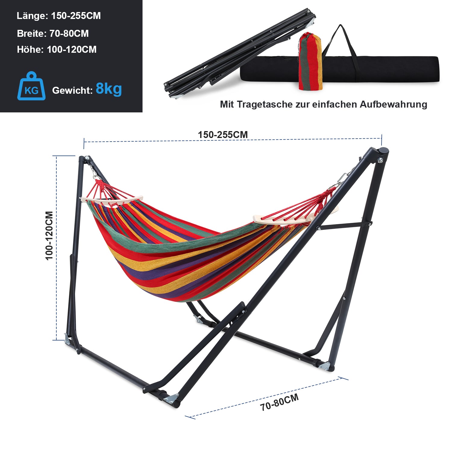 Ikodm Hängematte mit Gestell Faltbar Mit Aufbewahrungstasche