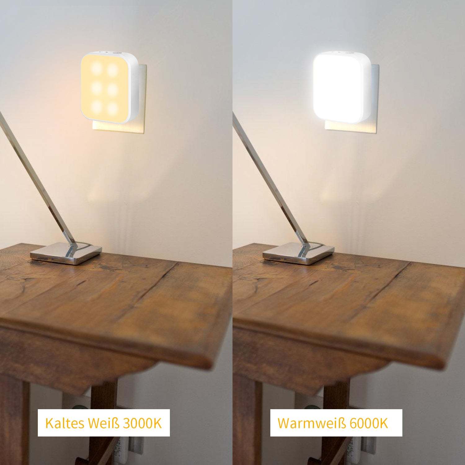 Lichtfarbe des Nachtlichts ist einstellbar: bietet 3000K warmes Weiß und 6000K kühles Weiß, zwei Lichtfarben, die Sie wählen und je nach Raumatmosphäre und Nutzung einstellen können.