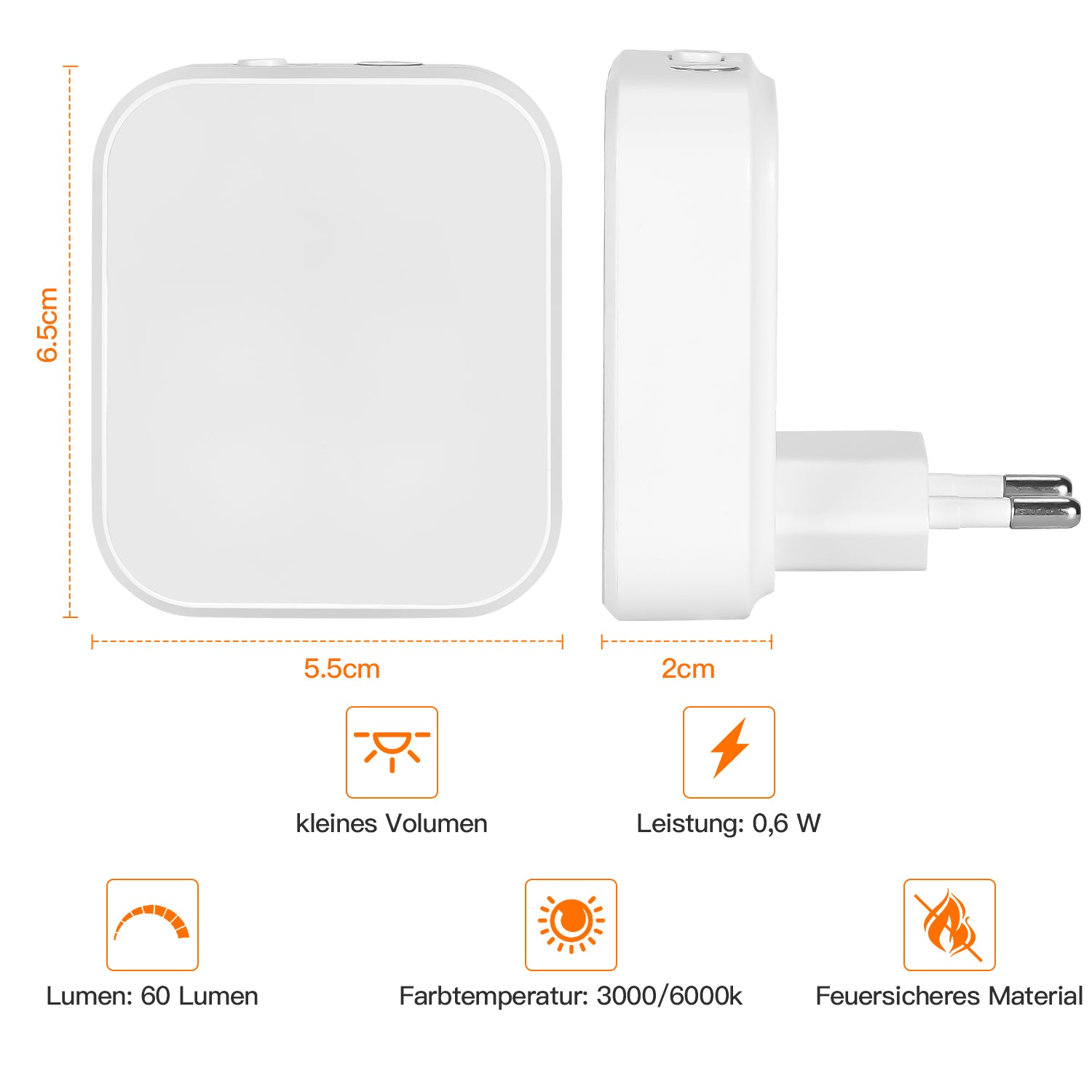 �Kompakte Größe: Das Nachtlicht misst nur 6,5*5,5*2cm, seine kompakte Größe und sein minimalistisches Aussehen helfen Ihnen nicht nur bei der Beleuchtung, sondern auch bei der Dekoration des Raumes.