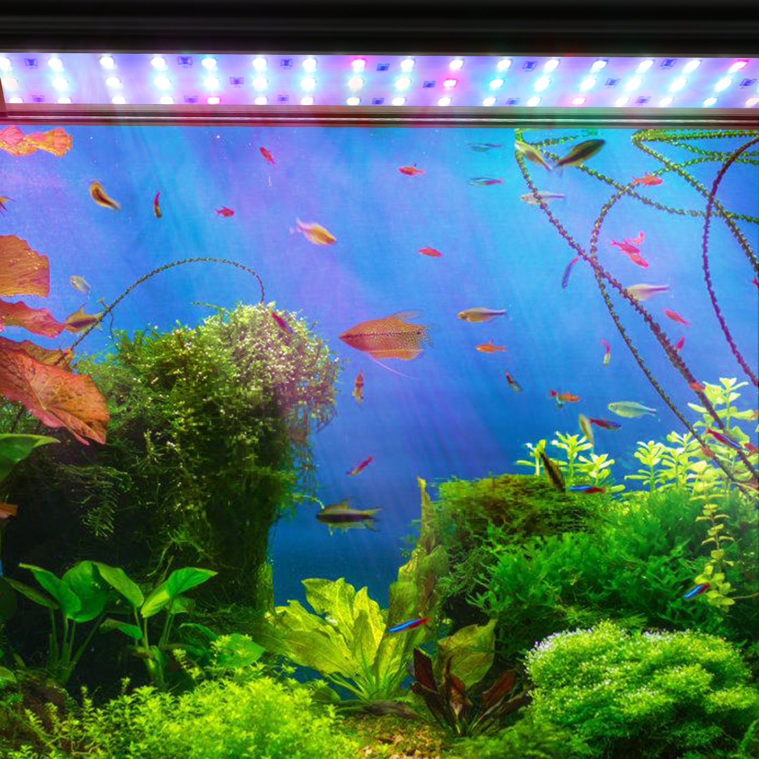�LED-Leuchten für Aquarien: LED-Leuchten senden blaues oder RGB-Mischlicht aus und schaffen eine sehr charmante Atmosphäre. Sparen Sie mehr Energie als herkömmliche Leuchtstoffröhren. Unter der Unterstützung der Lampe können Sie die Lampe in jedem Aquarium aufhängen.Hinweis: Dieses Produkt kann nicht in Wasser getaucht werden.