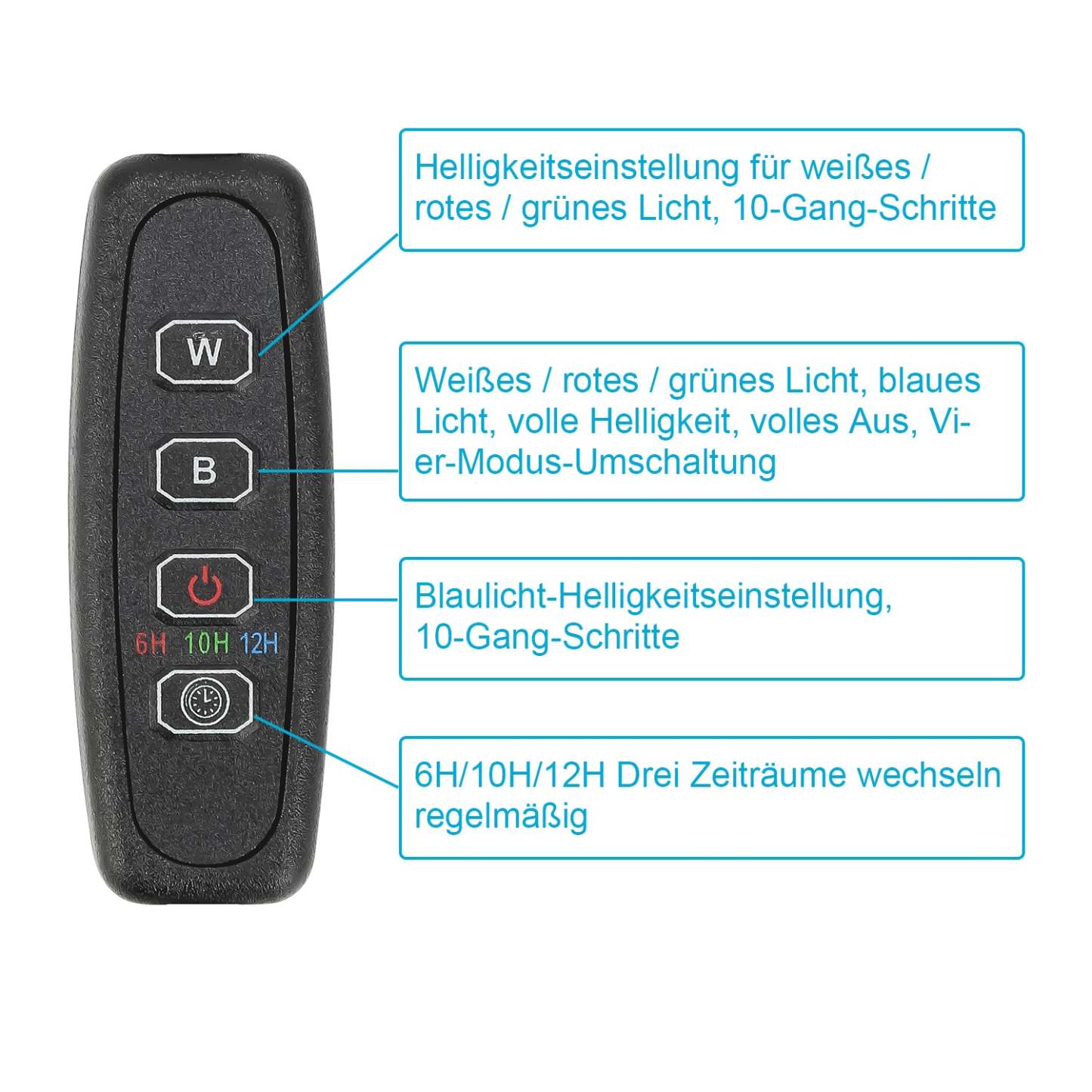 18 W: 48 LEDs = 26 weiß + 12 blau + 5 rot + 5 grün