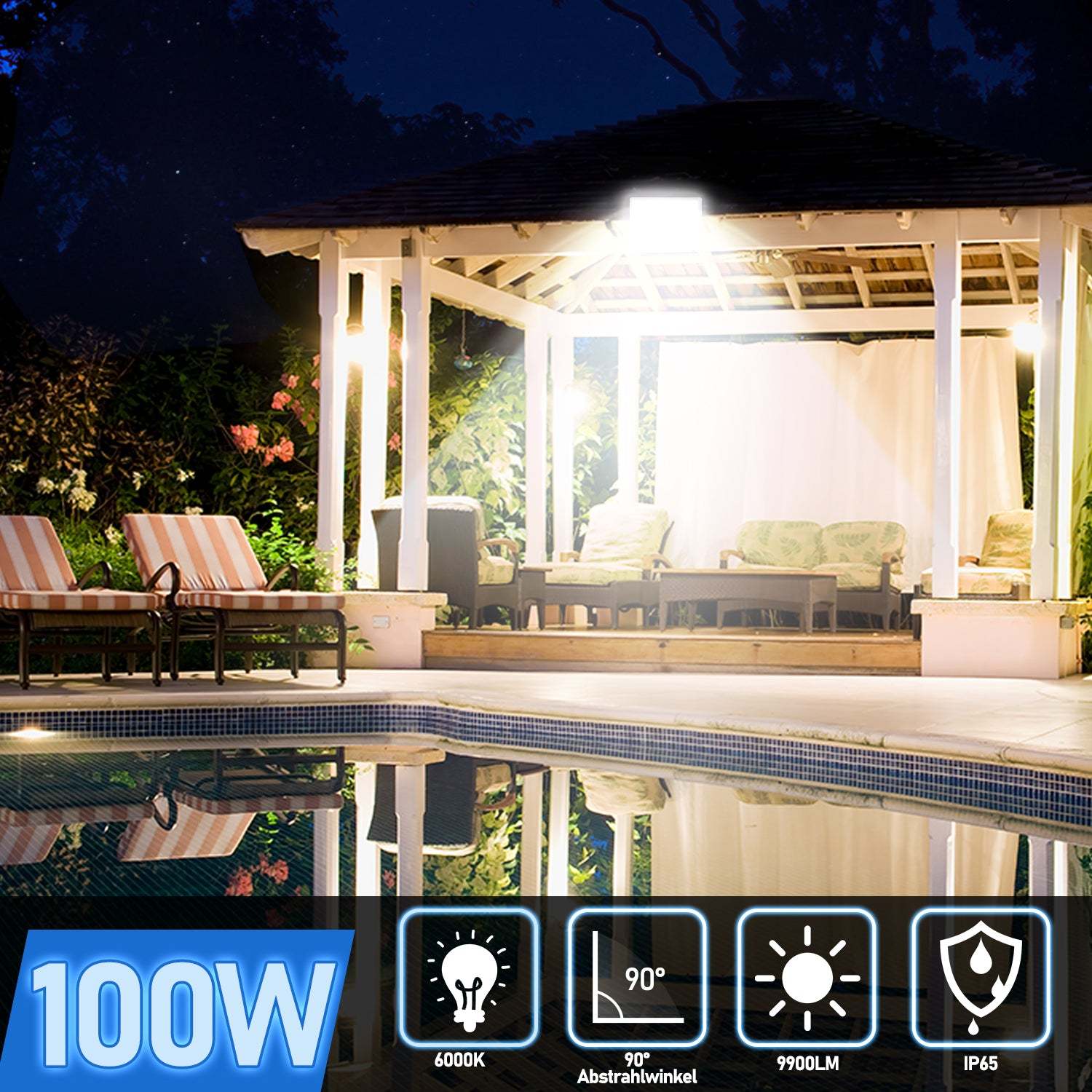 √ IP65 wasserdicht. Geeignet für den Einsatz im Innen- und Außenbereich.