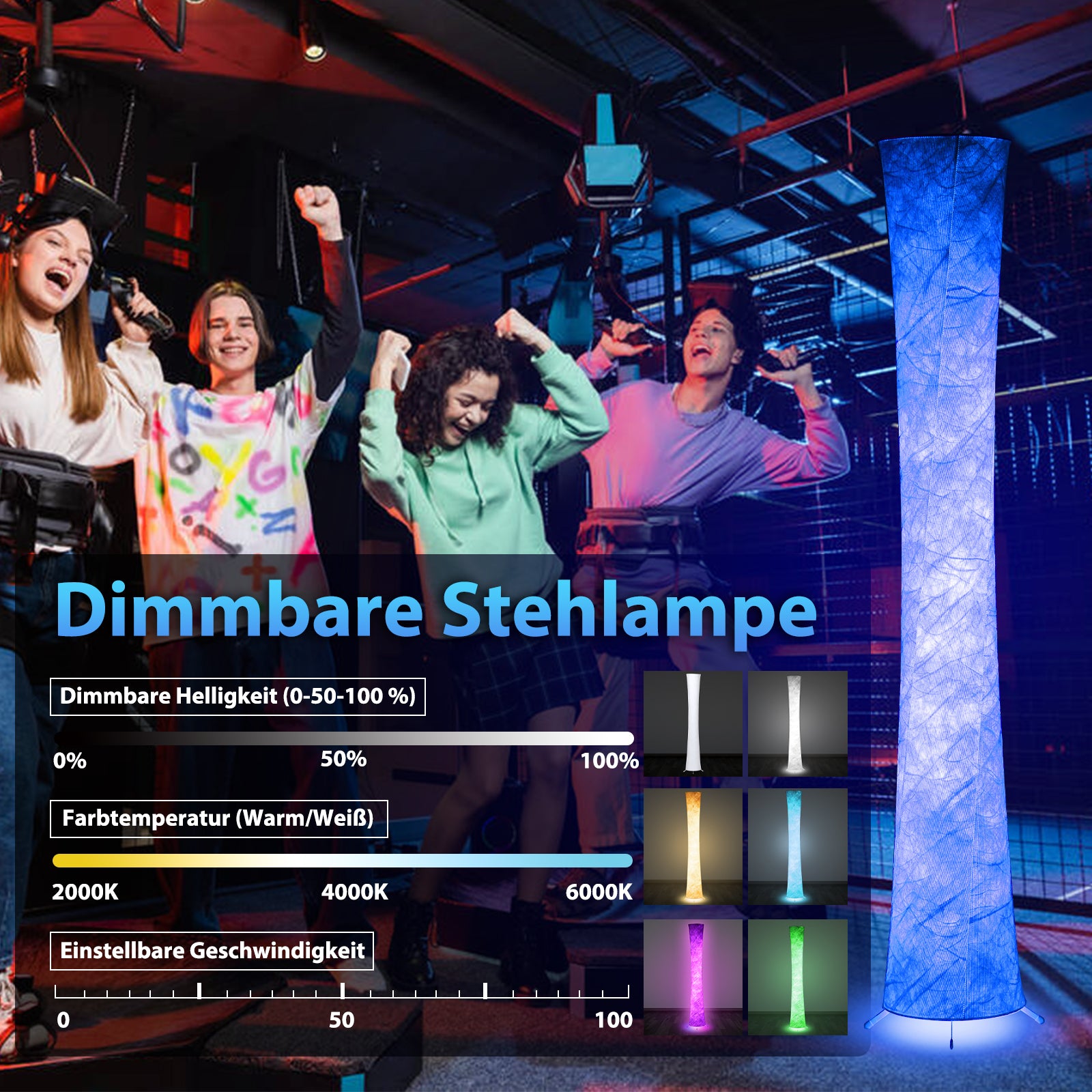 �【2 Kontroll Methoden】Stehlampe glitzereffekt kann per APP & farbwechsel gesteuert werden. 3 angenehme Farbtemperaturen (Kaltweißes、Warmweißes und Tageslicht) und 20 farbige Blinkmodus. Es gibt mehr als 200 RGB-Transformationseffekte, die jeweils eine einzelne Farbe oder einen Verlaufseffekt anzeigen können.