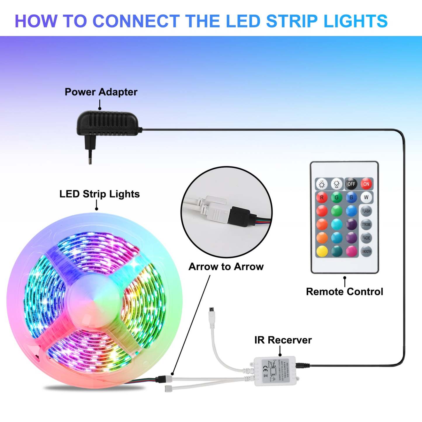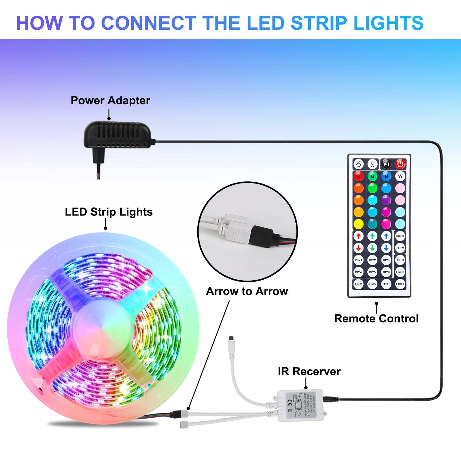 【Kann geschnitten werden】Jede 1M LED Streifen hat 30 RGB 5050 SMD LEDs und jede LED kann geschnitten werden. Schneiden Sie die LED-Lichtleiste entlang des Schneidepfeils, ohne den Rest der Lichtleiste zu beschädigen.