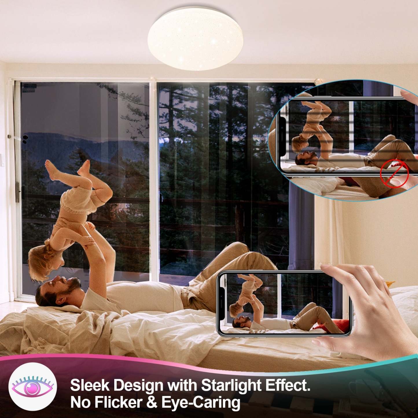 【Sternenhimmel Design】 Der Lampenschirm dieser Deckenleuchte adoptieren Sternen Wirkung, die Sie verträumte fühlen können. Es ist sehr gut geeignet für Babys und Kinder. Die LED Lampe sorgt mit 24 Watt und 1920 Lumen für ausreichend Licht in jedem Raum.Und dieser Schlafzimmerlampe entspricht einer herkömmlichen 150W Glühlampe und spart mehr als 85% an Stromkosten.