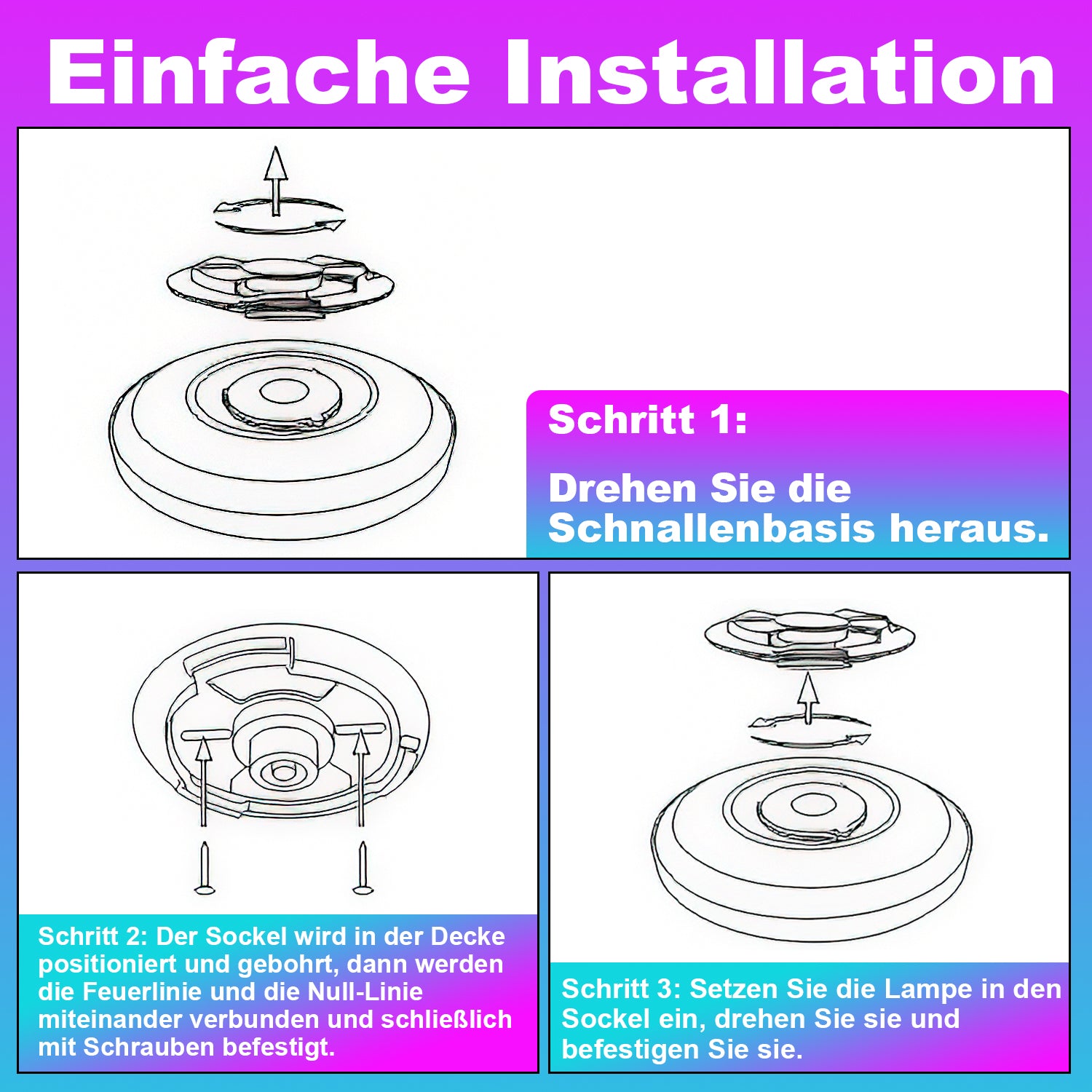 �Einfache Installation: Eine Person kann die Smart RGB LED Deckenleuchte alleine und ohne großen Aufwand flach installieren. Die Deckenleuchte ist einfach zu installieren und dauert nur wenige Minuten, und Sie können den gesamten Vorgang alleine abschließen. Kein Elektriker erforderlich.