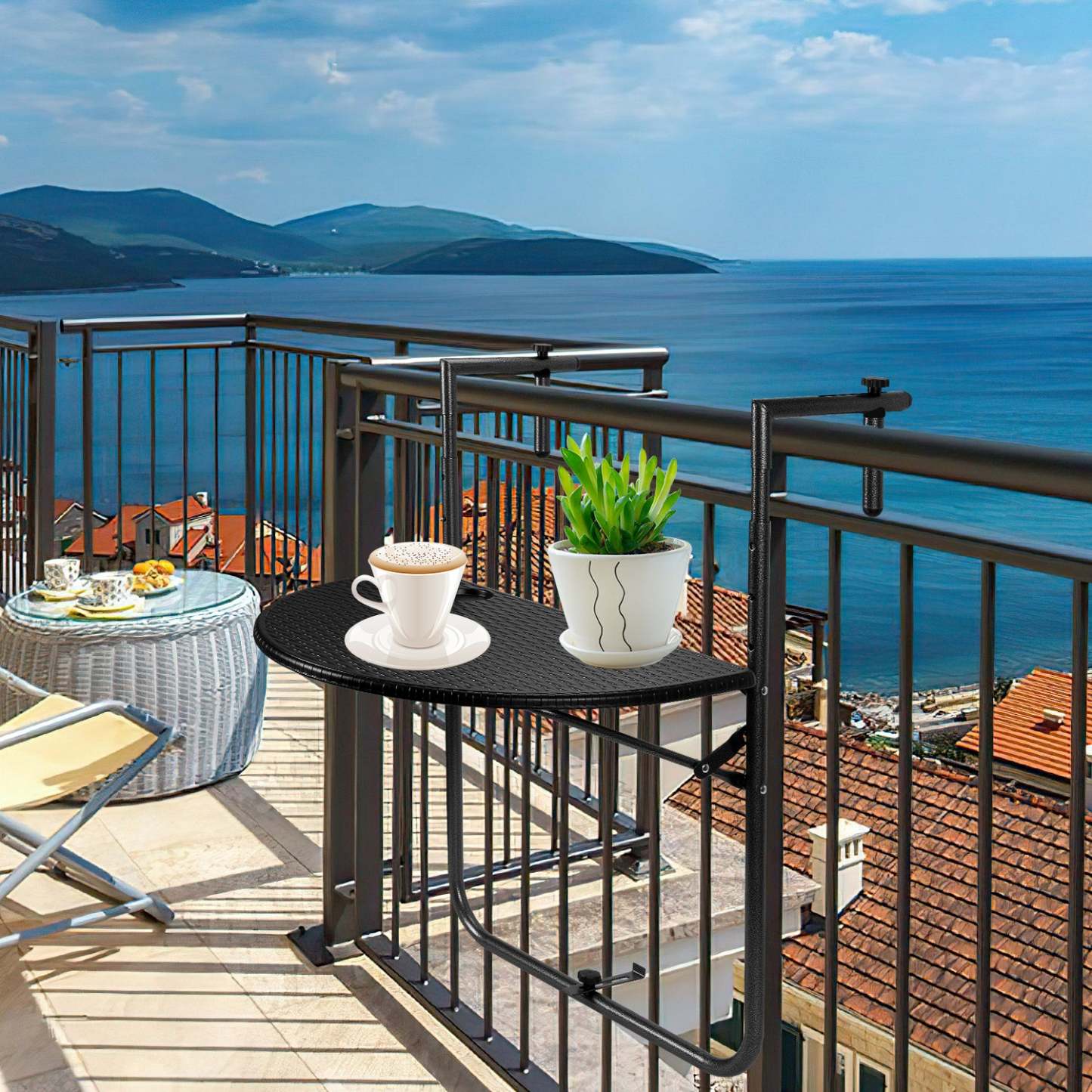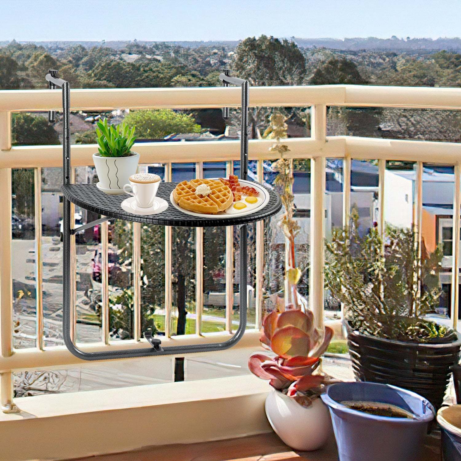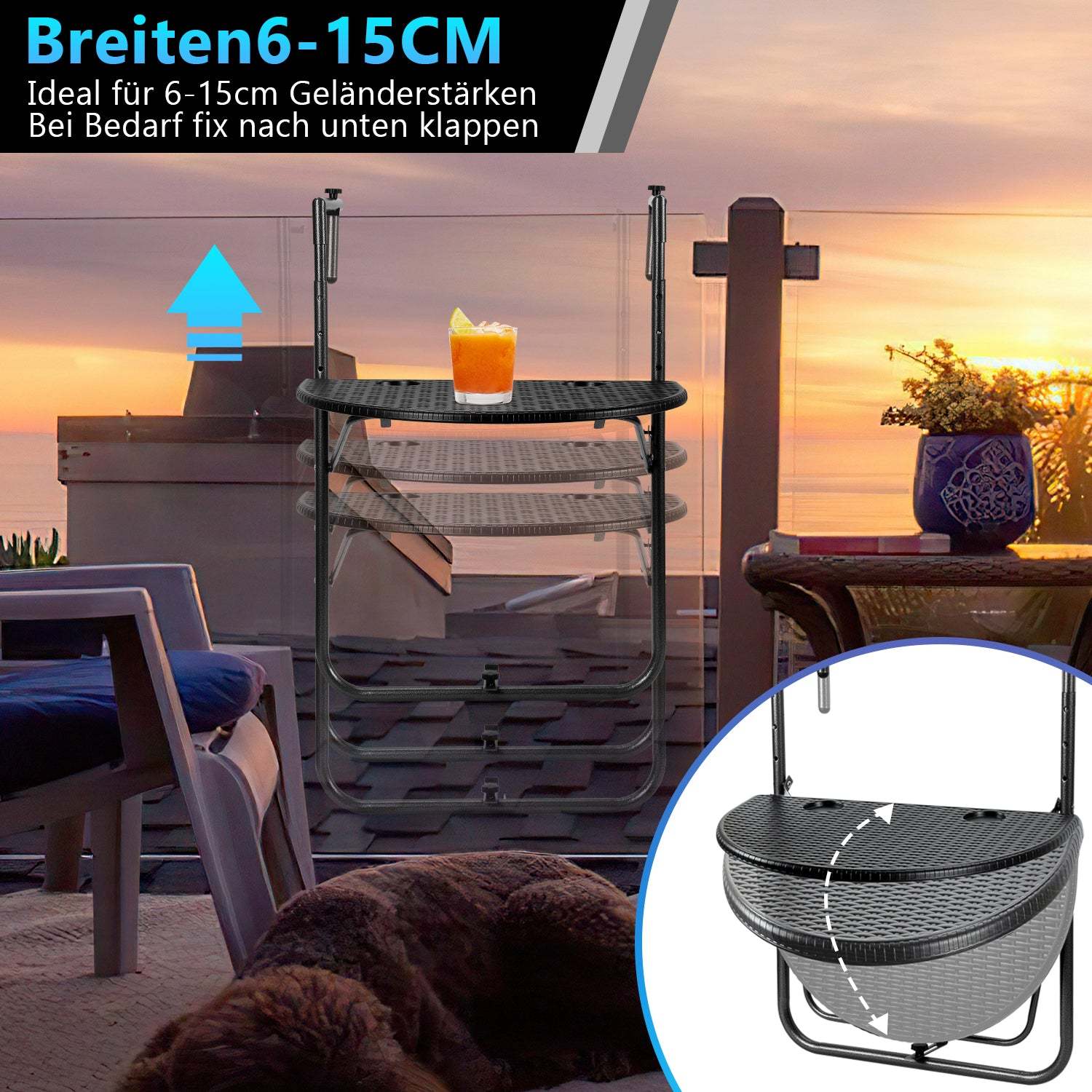 【Leicht zusammenzubauen】Mit einem Handgriff haben Sie im Nu einen praktischen balkonmöbel kleiner balkon auf Ihrem Balkon. Geeignet für Balkongeländer mit einer Breite von 6 bis 15 cm.