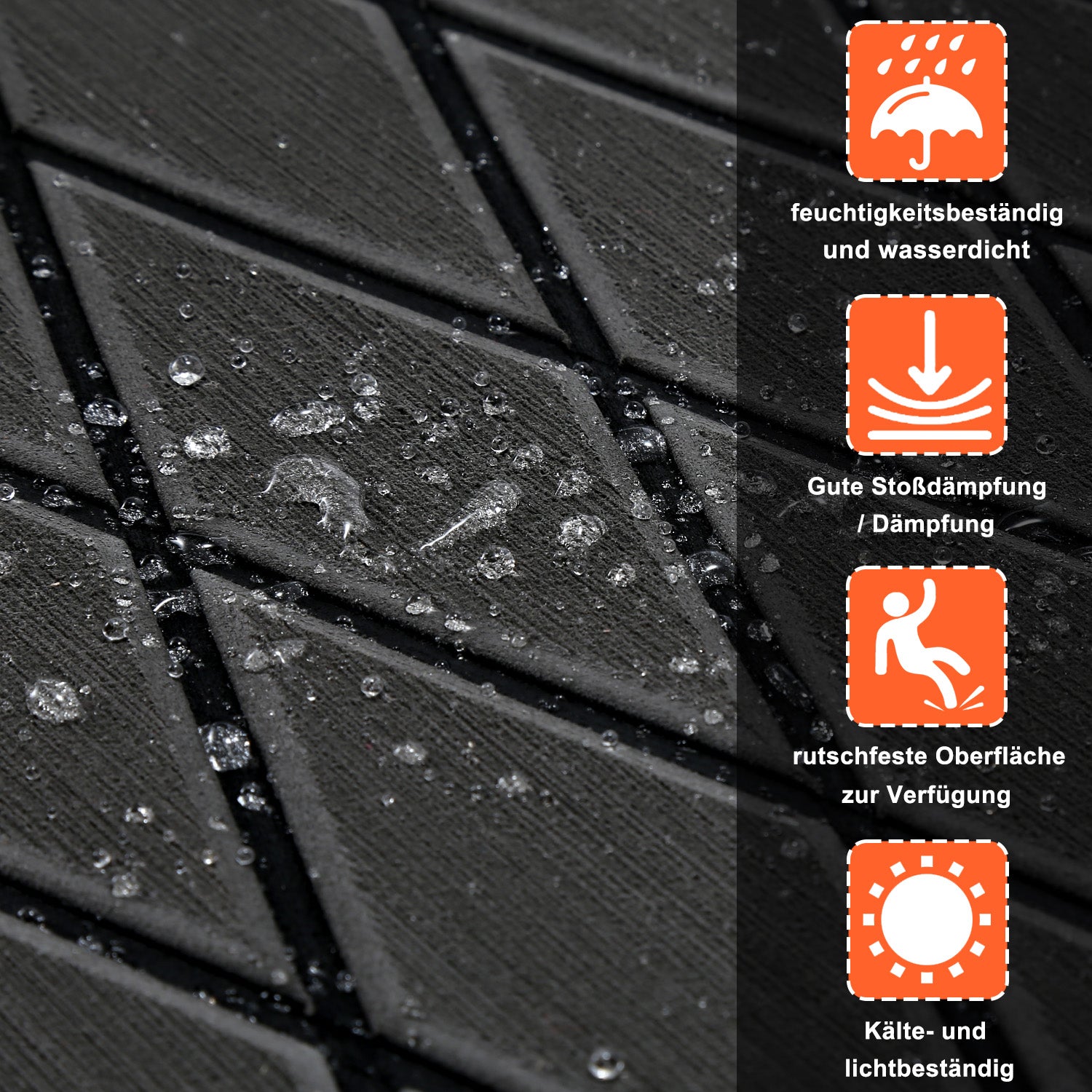 ✅【Rutschfest und feuchtigkeitsbeständig】Diese selbstklebende Bootsdeckmatte ist hitze- und feuchtigkeitsbeständig, hitzebeständig und kältebeständig, hält Kälte und Sonnenlicht in nassen oder trockenen Umgebungen stand und schützt den Boden perfekt.