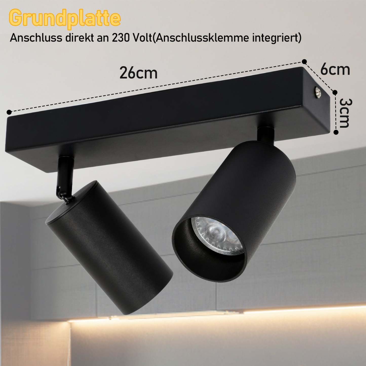 Doppelkopfstrahler: 1 Doppelkopfstrahler + 2 warmweiße GU10-Lampen