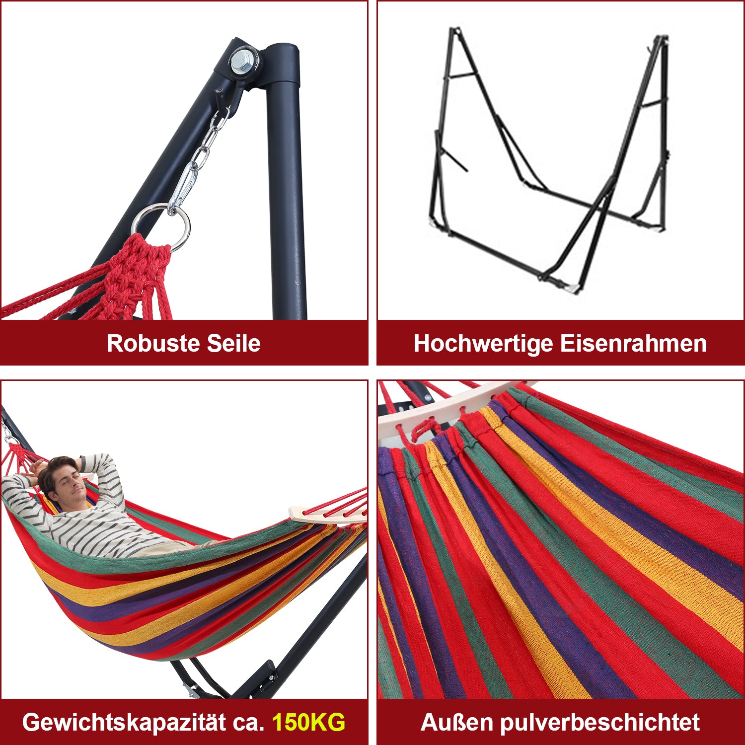 ✨【Verdickter Hängemattenrahmen】Rohrdurchmesser sorgt für die nötige Stabilität und Sicherheit der Hängemattenstütze. Die Hängematte ist abwaschbar und das Hängemattengestell ist zusätzlich mit einer Pulverbeschichtung wetterfest gemacht.