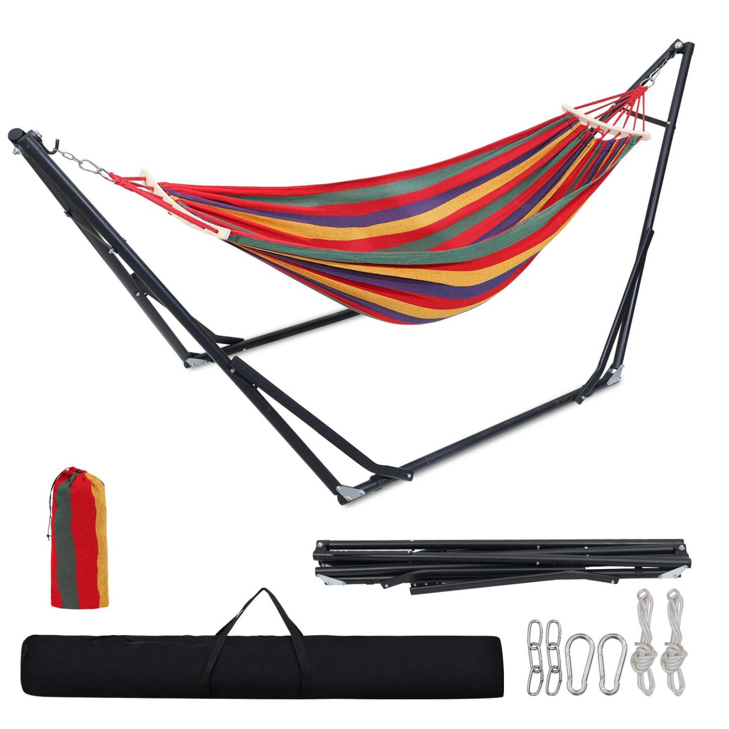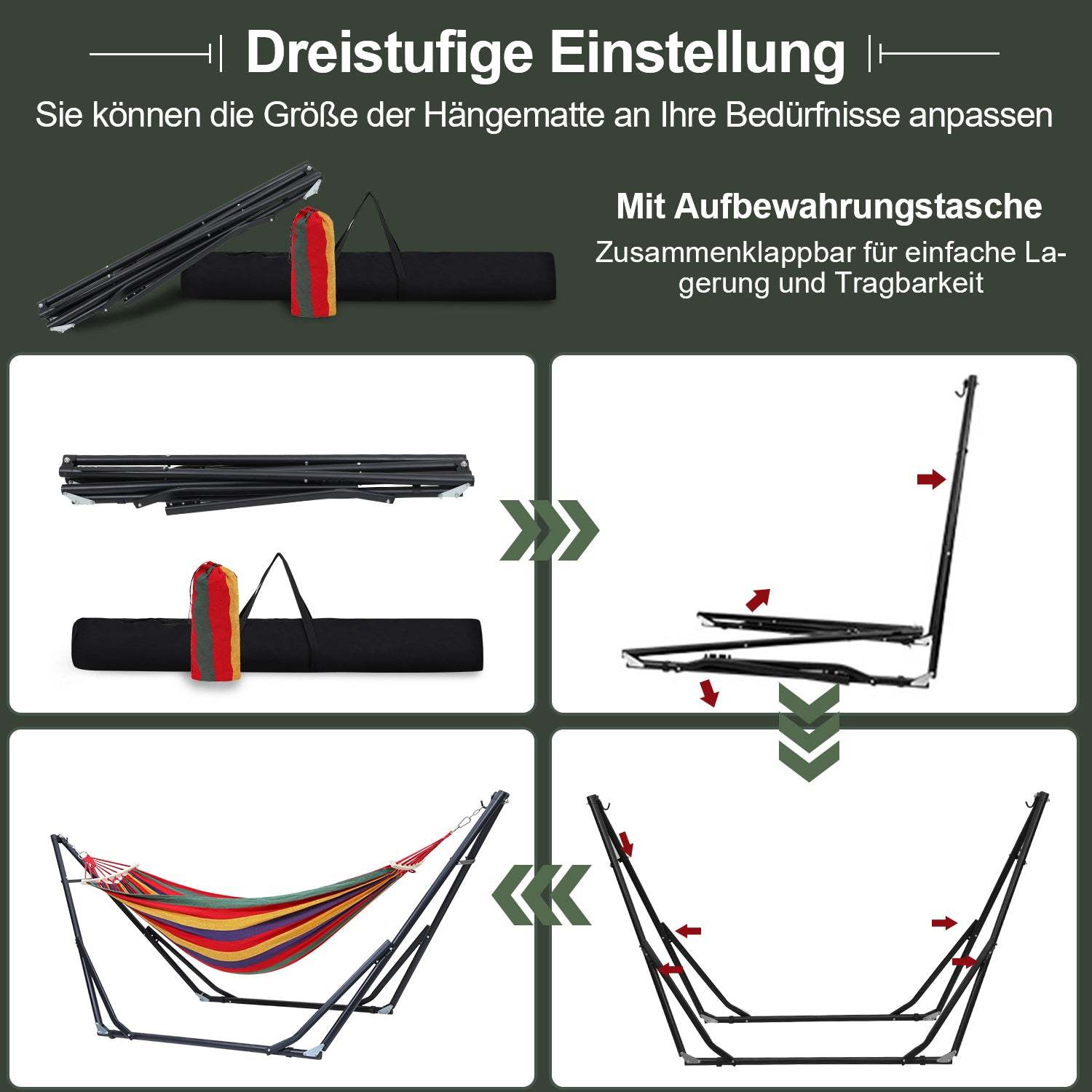 ✨【Einfacher Auf- und Abbau】Mit Aufbewahrungstasche. Hängematte Zusammenklappbar ist das Gestell betriebsbereit montiert, was sich leicht verstauen und überall hin mitnehmen lässt.