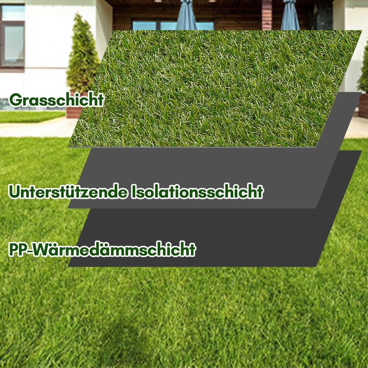 �【Langlebig】Rasenteppiche sind regen- und UV-beständig. Dank seiner Witterungsbeständigkeit eignet sich der Grasteppich hervorragend als Bodenbelag für Außenbereiche wie Balkon, Terrasse, Dachterrasse oder Wintergarten.