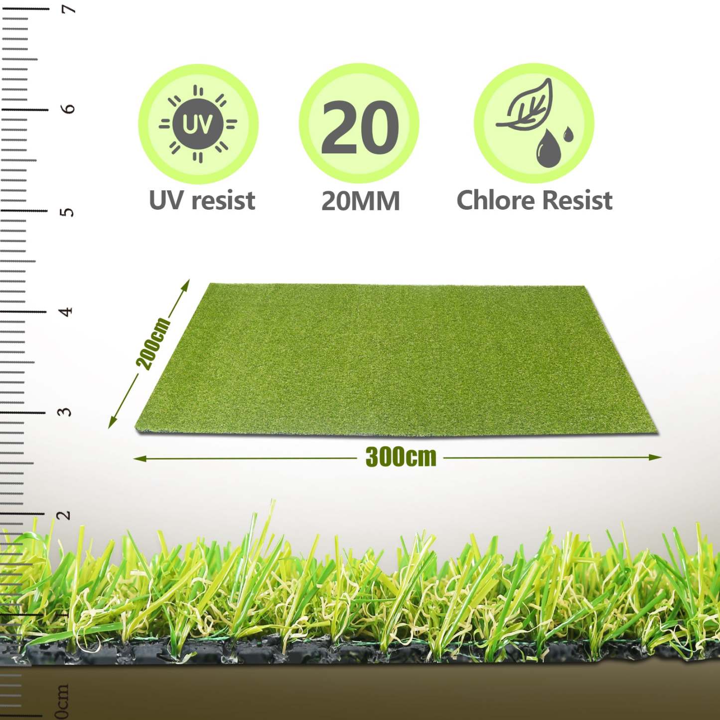 Ikodm Kunstrasen Rasenteppich 200x100 cm/200x300 cm
