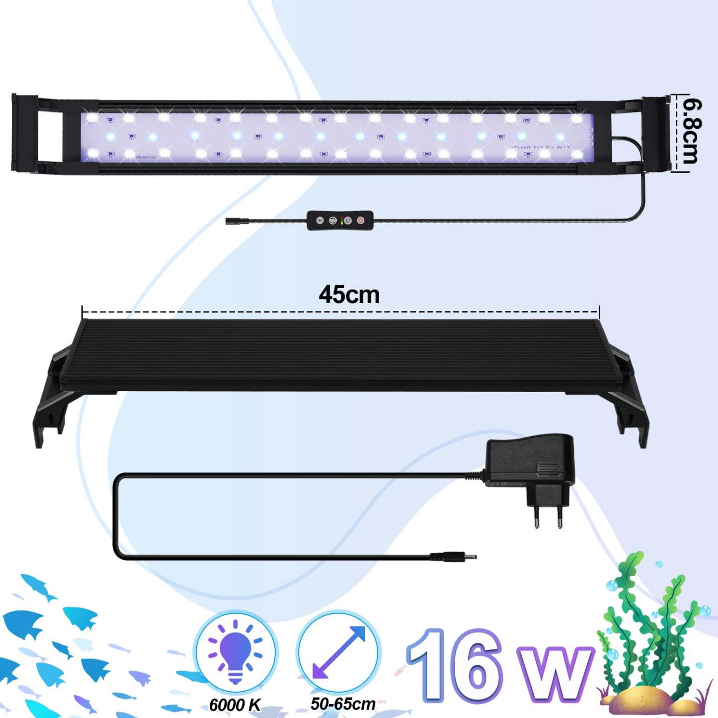 Das 16W LED-Aquarium verfügt über 28 weiße LEDs und 14 blaue LED-Lampen für ein 50-65cm Aquarium