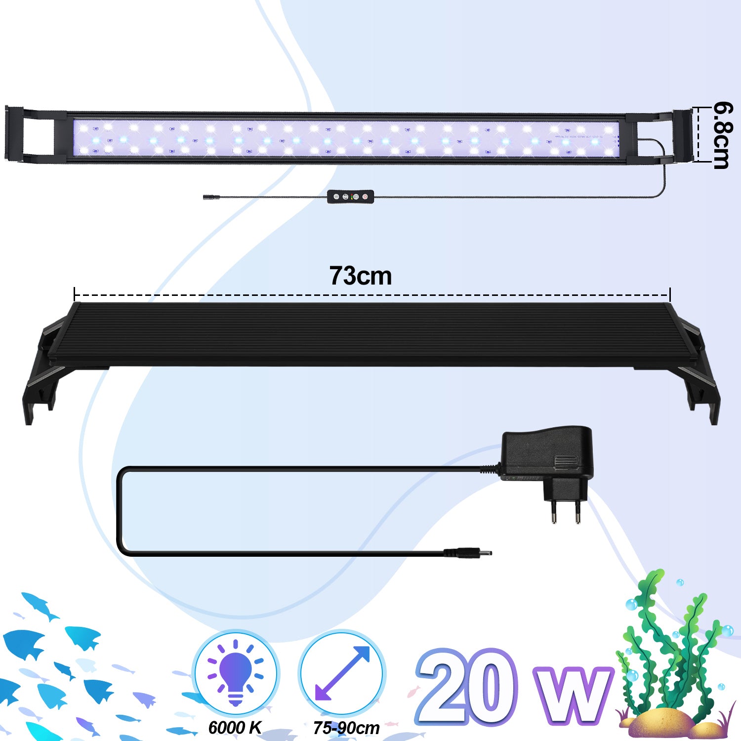 Das 20W LED-Aquarium verfügt über 28 weiße LEDs und 14 blaue LED-Lampen für ein 75-90cm Aquarium
