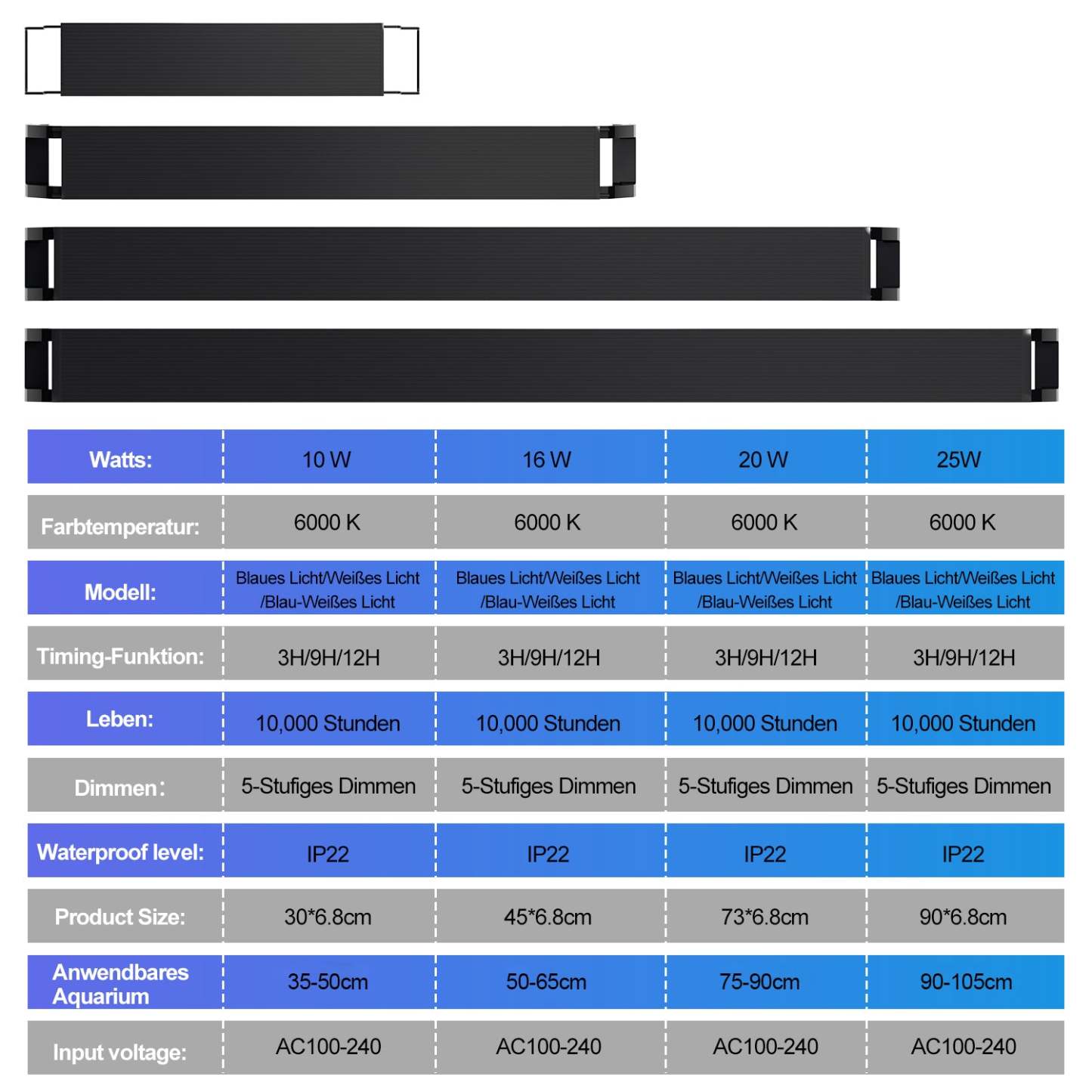 Das 25W LED-Aquarium verfügt über 50 weiße LEDs und 20 blaue LED-Birnen für ein 90-105cm Aquarium