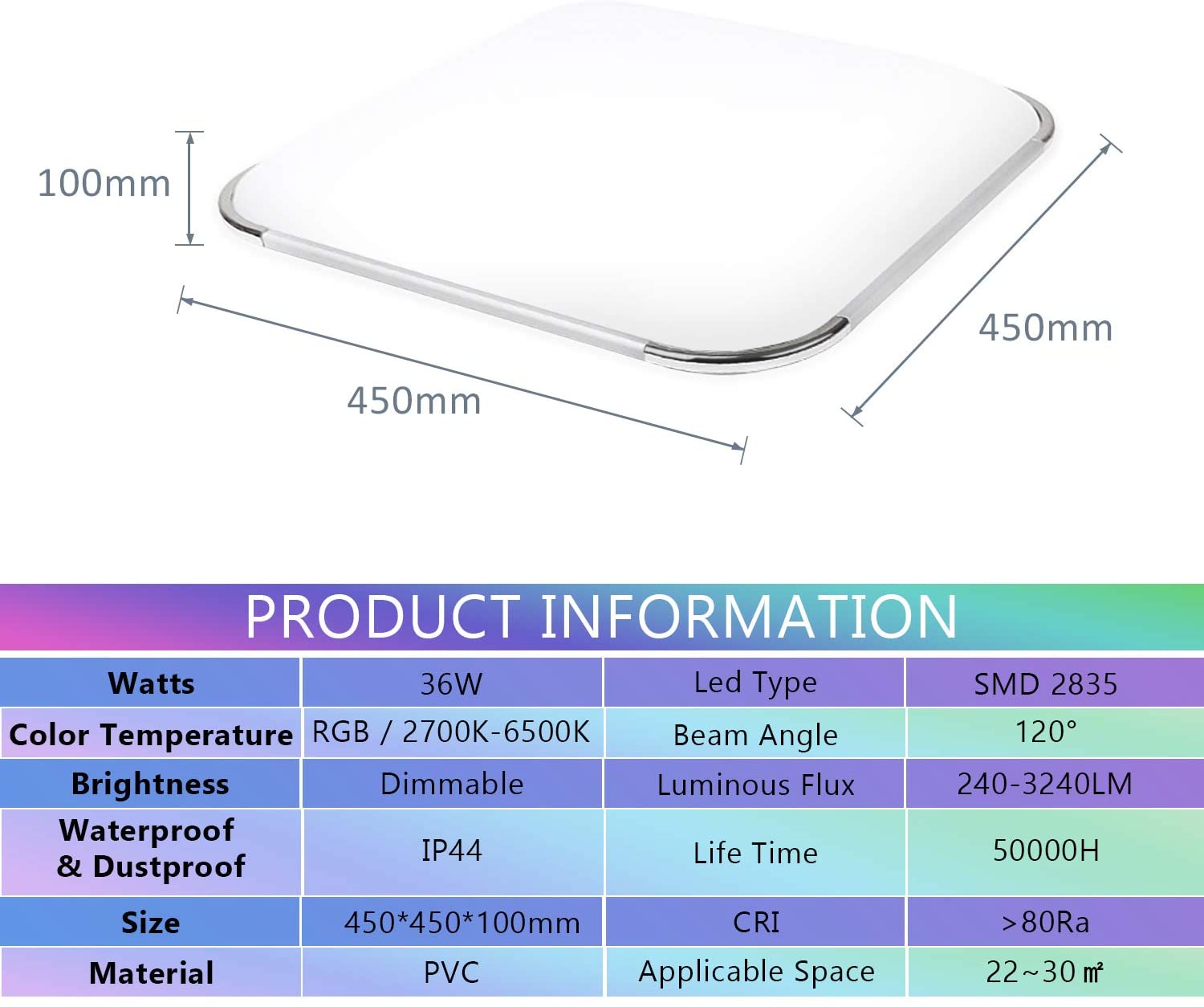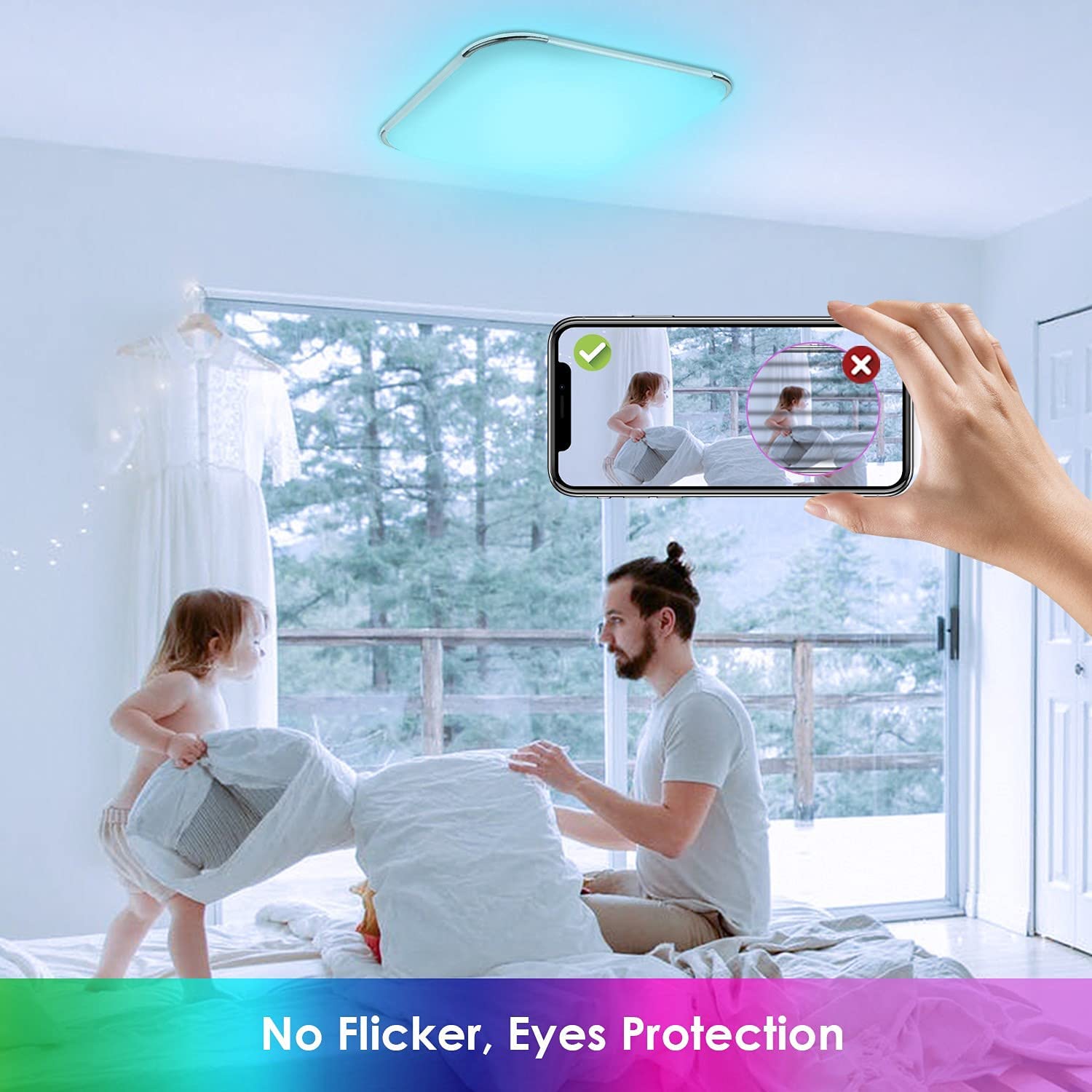 �【LED Deckenleuchte RGB & Einstellbar Helligkeit】Sie können die Helligkeit (10% -100%) und die Farbtemperatur (2700K-6500K) des Lichts nach Ihren Bedürfnissen einstellen. Verschiedene Farben(Rot, Grün, Blau) der Lichter können Ihre Stimmung und Atmosphäre des Raumes anpassen. Mehrere Farbtransformationen mit der Fernbedienung.(Die neue Version oder die alte Version der Fernbedienung wird nach dem Zufallsprinzip gesendet.)