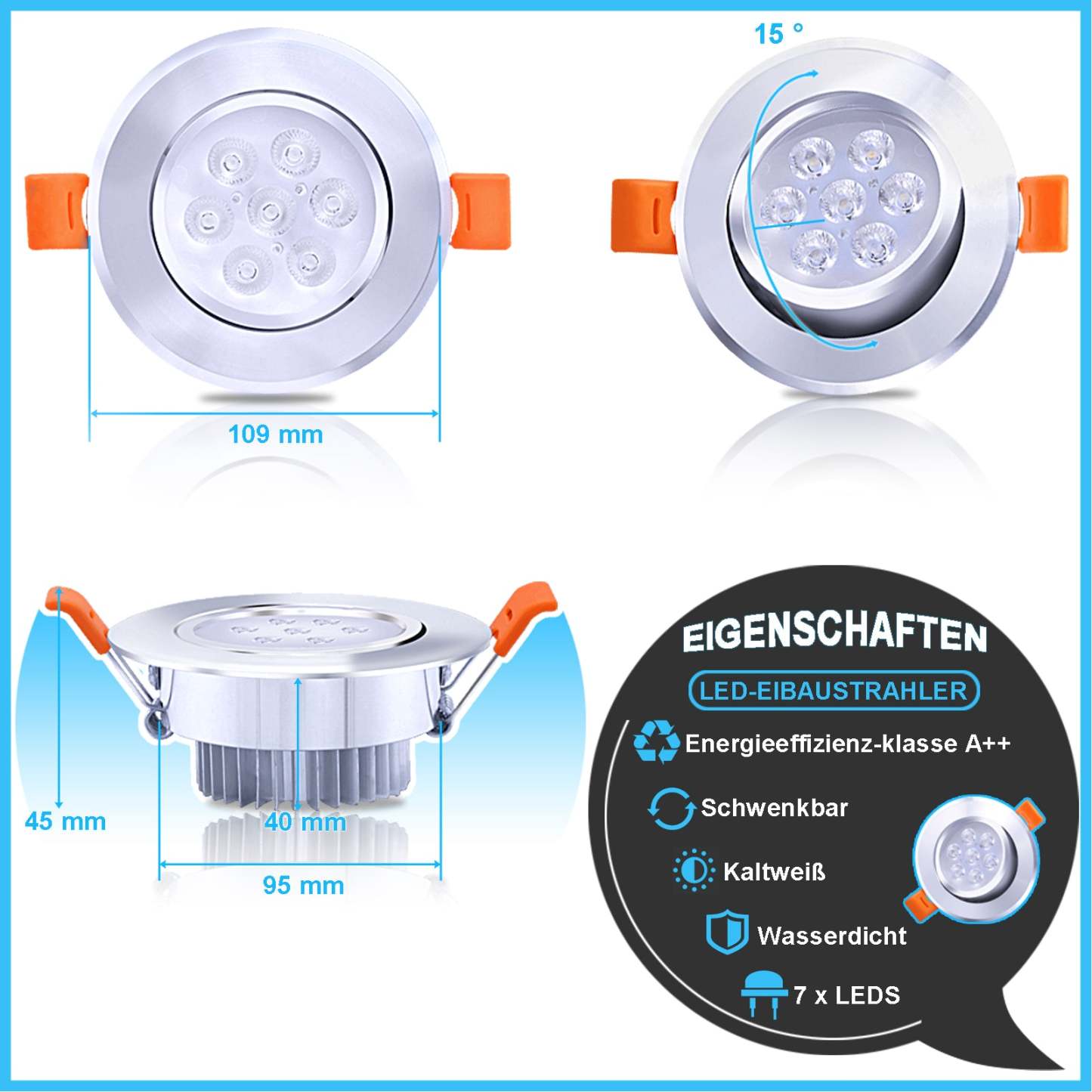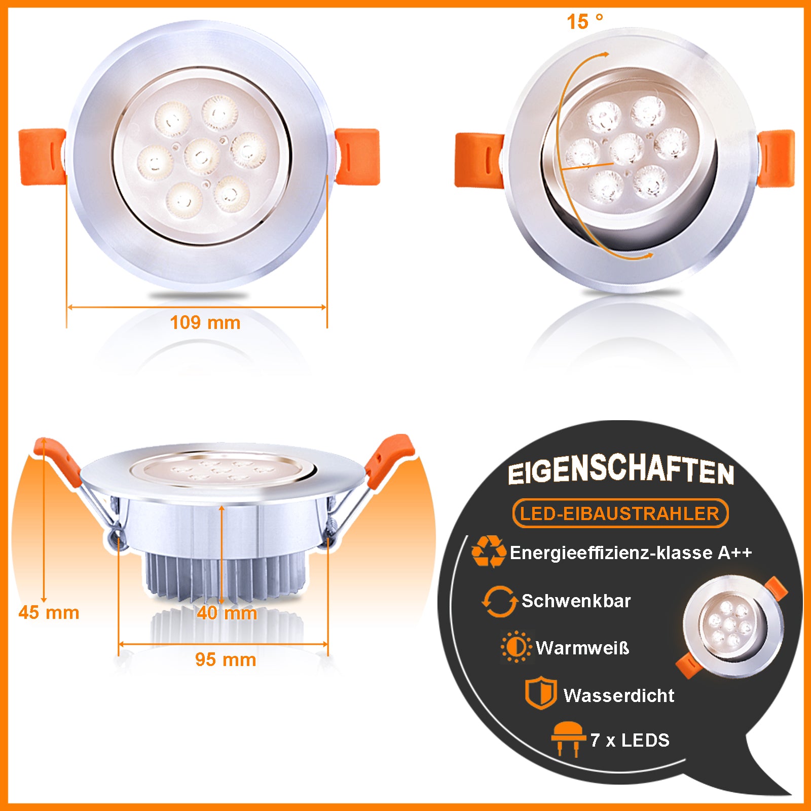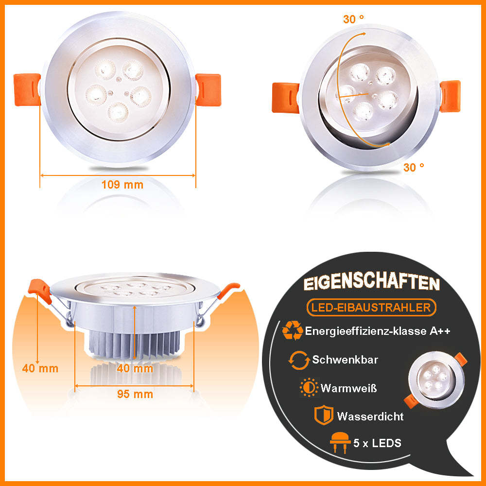 � Breite Anwendung: Diese LED Einbaustrahler mit Spritzwasserschutz IP20, ist ideal für Eingangsbereich, Treppenhaus, Wohnraum, Badezimmer.