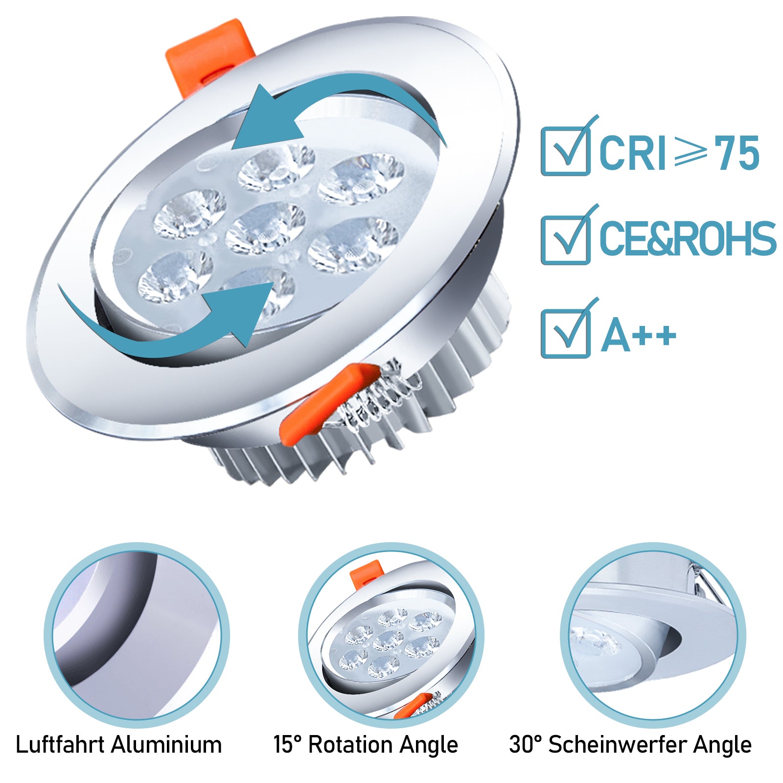� HOCHWERTIG: Das Gehäuse aus Aluminiumlegierung bietet eine hervorragende Kühlleistung für diese LED-Downlights. Diese Strahler sind mit haben eine bessere Lichtwirkung als die mit Kunststoffplatten abgedeckten, Lange Lebensdauern über 30.000 Stunden.