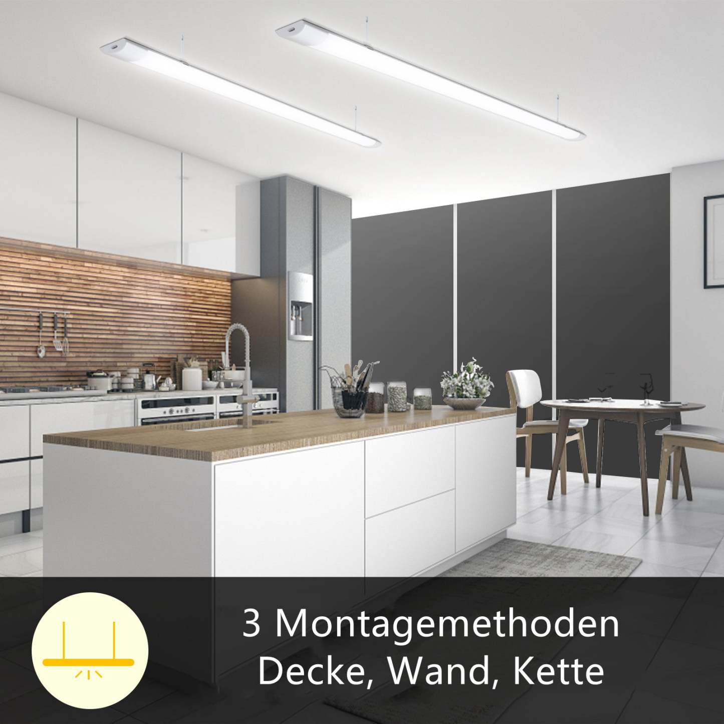 ✅【Breites Anwendungsspektrum】 Unsere ultradünnen Led Feuchtraumlampe geeignet für Werkstatt, Waschraum, Warenhaus, Büro, Garage, Keller, Badezimmer, Küche, Werkbank, Fabriken, Parkplätze, Carport, Hobbyraum, Umkleide, Garten, Hof, Terrasse, Flur, Korridor, Diele, Balkon.