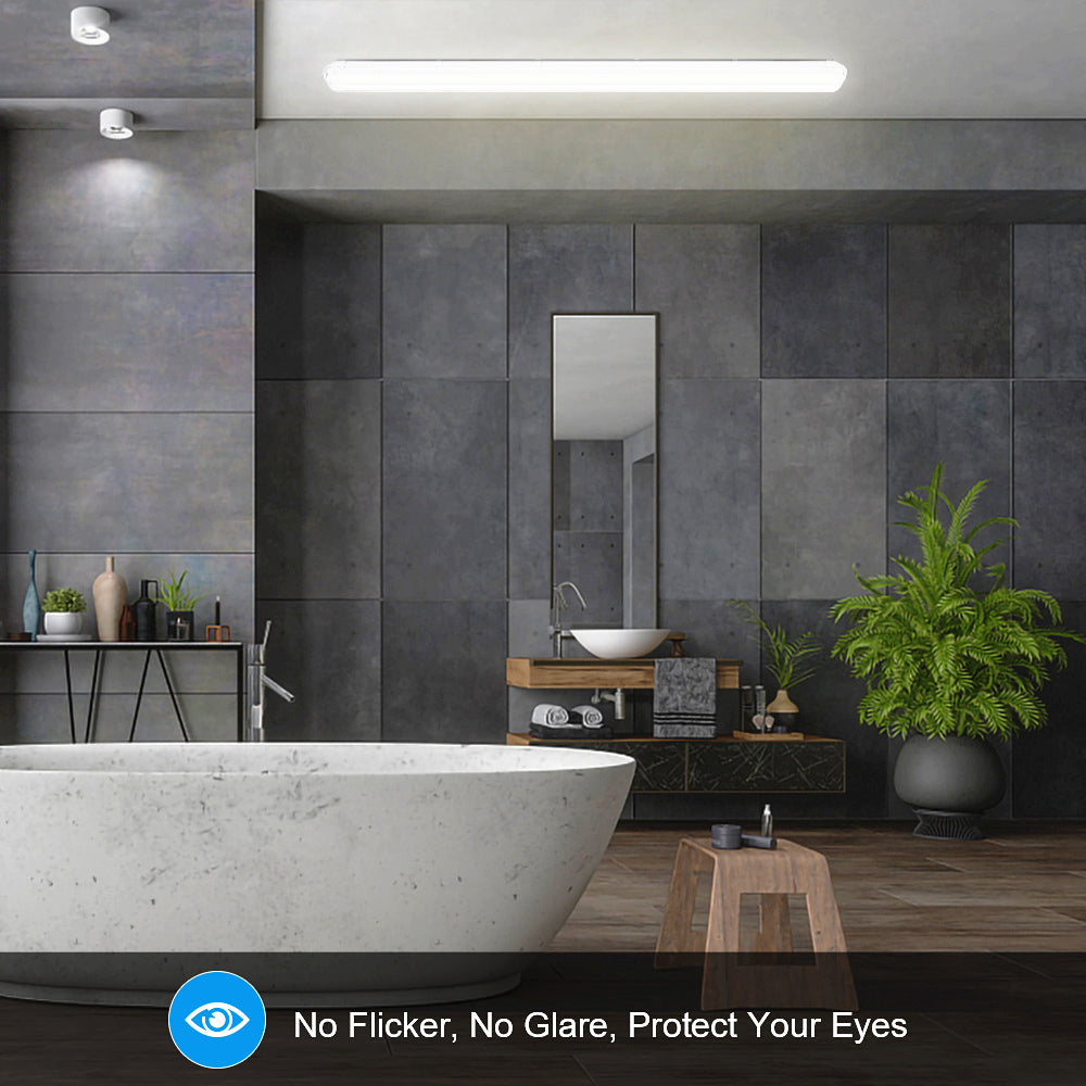 �50000H Lange Lebensdauer: Die LED Technologie gewährleistet eine super lange Lebensdauer 50000H der Röhrenlampe. Im Vergleich zu herkömmlichen Leuchtstofflampen müssen Sie die LED Feuchtraumleuchte seltener austauschen. Zusätzlich ist sie praktisch wartungsfrei, was Ihnen Zeit und Mühe erspart.