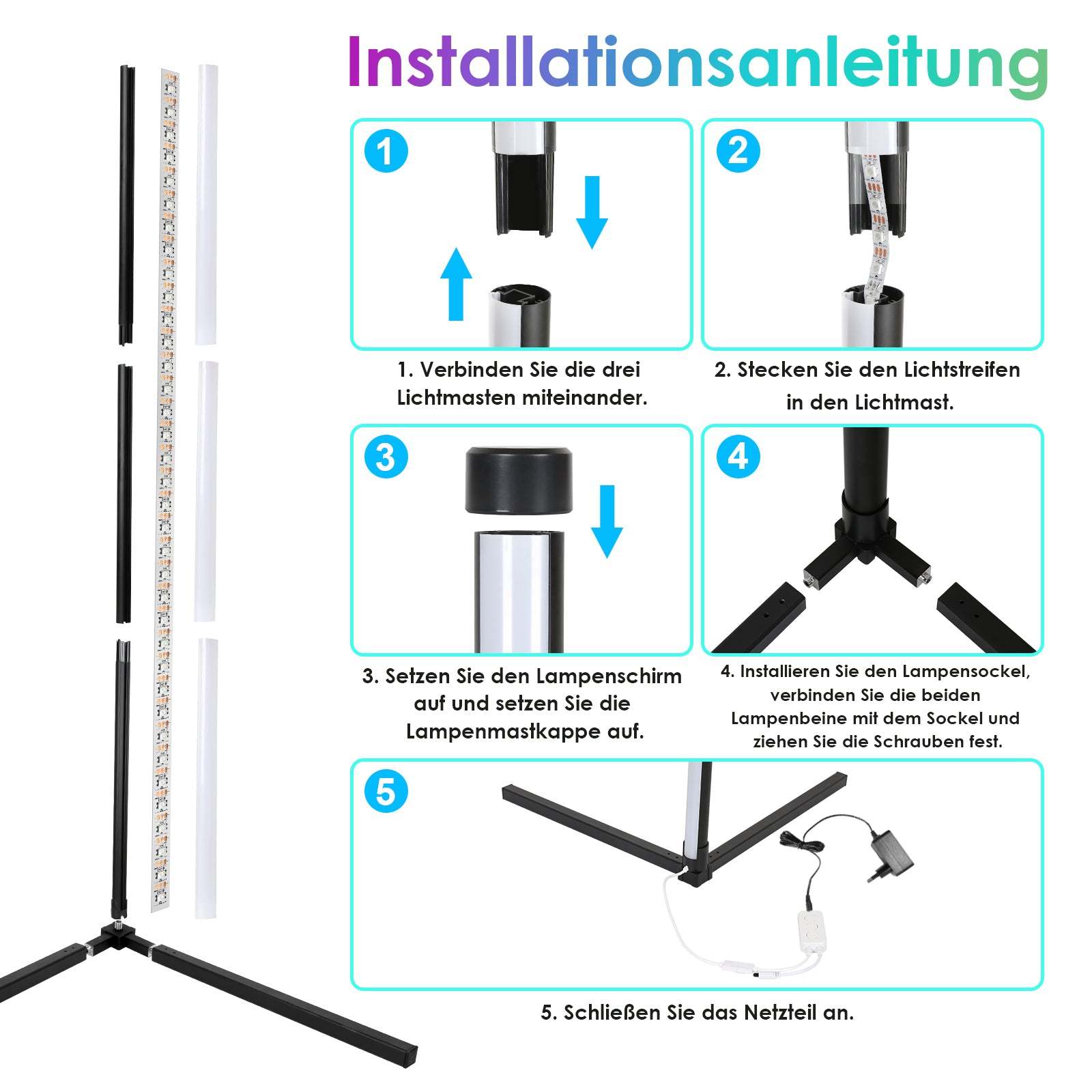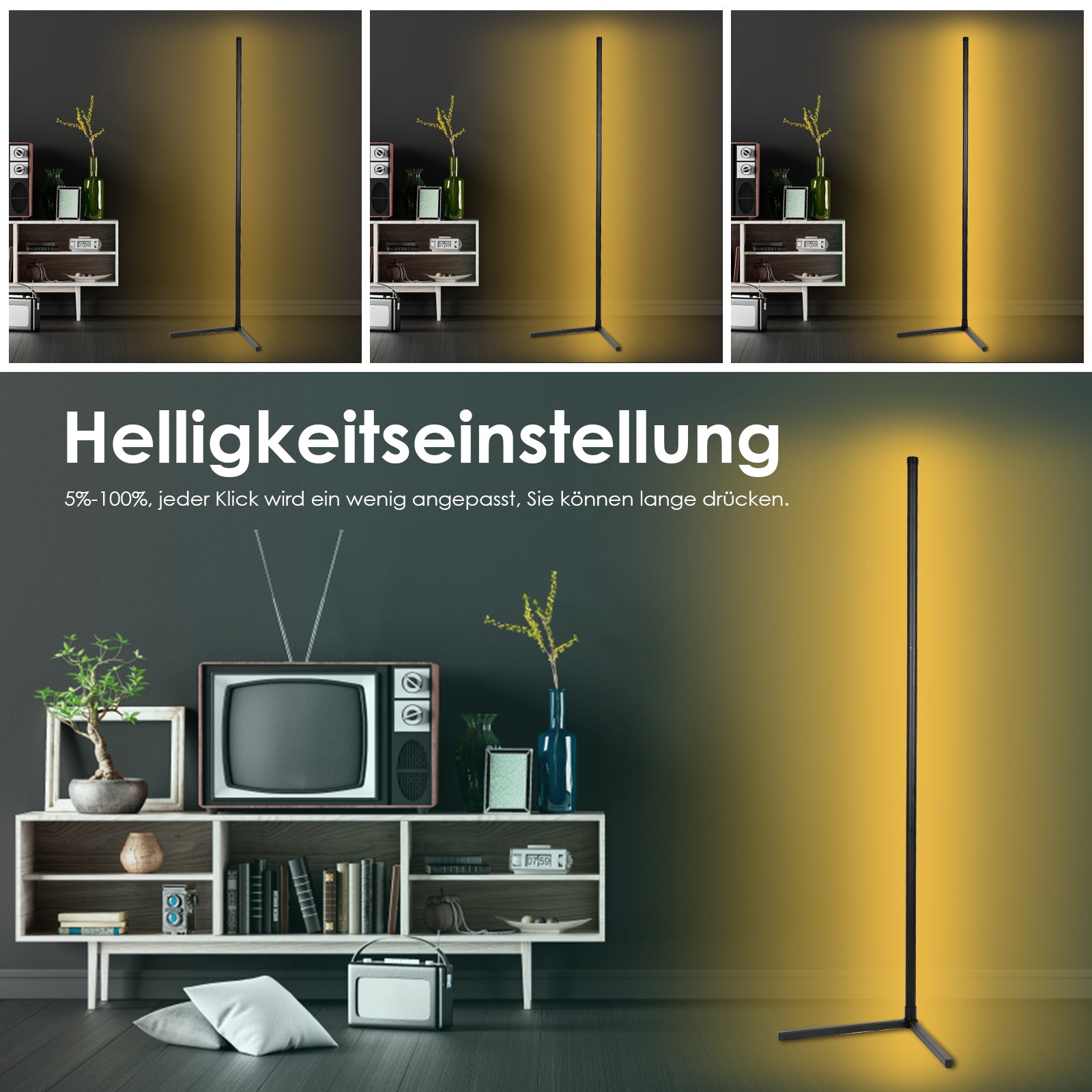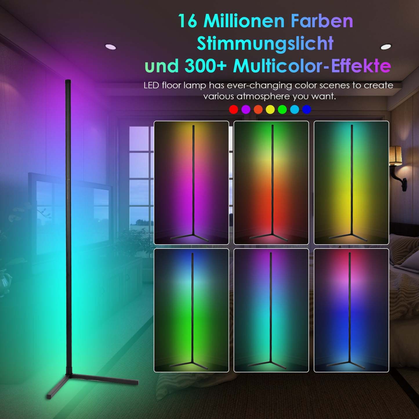 Die LED-Stehleuchte verfügt über Millionen von RGB-Farben, die durch Veränderung der Farbszene die gewünschte Atmosphäre schaffen können. Ob Sie nach einem anstrengenden Arbeitstag entspannen, eine aufregende Party mit Familie und Freunden veranstalten oder Ihr schönes Zuhause zu jedem Anlass dekorieren möchten, eine Stehleuchte muss Ihre beste Wahl sein.