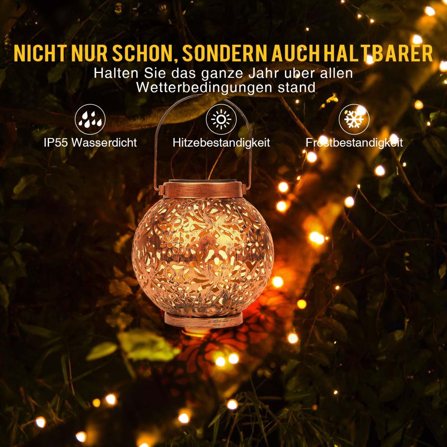 �【IP55 Wasserdicht】Diese Garten deko Solarlampen für Außen ist IP55 wasserdicht, hitzbeständig und Frostbeständig.