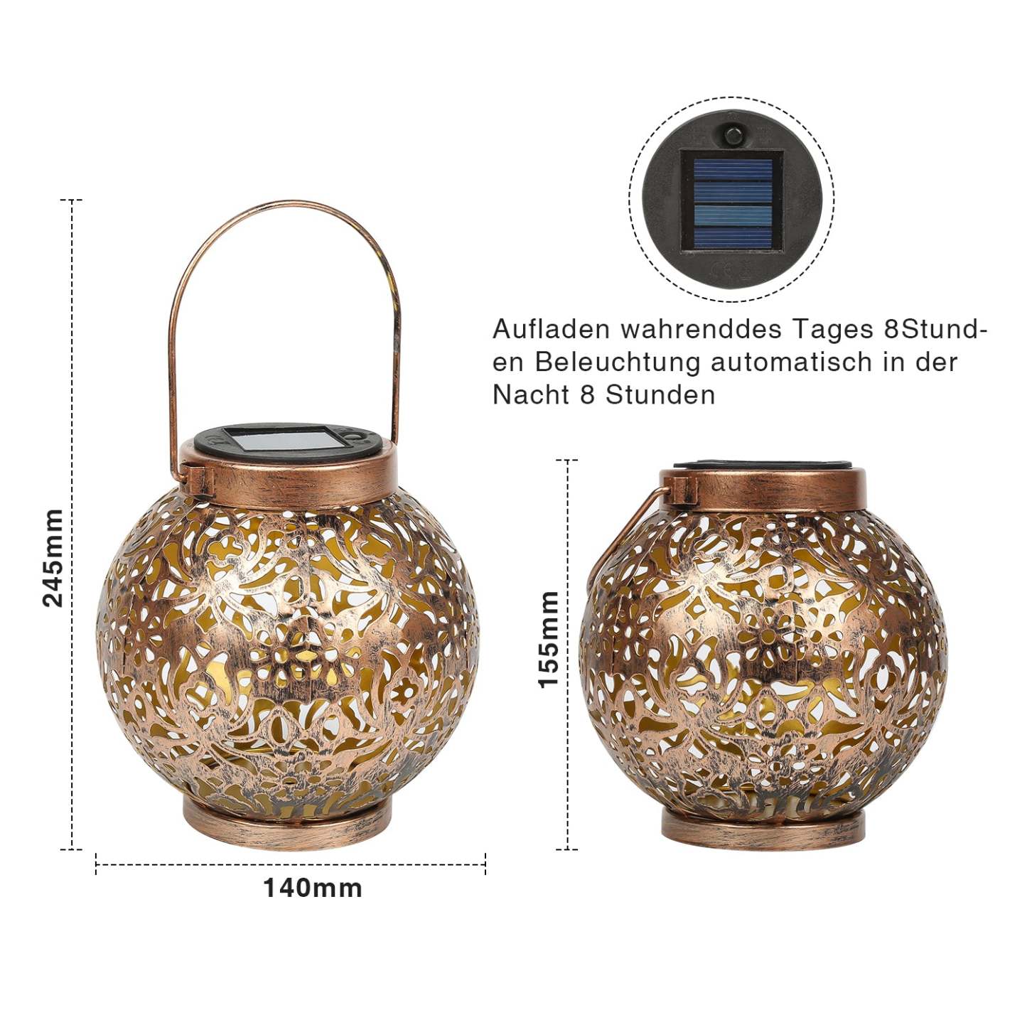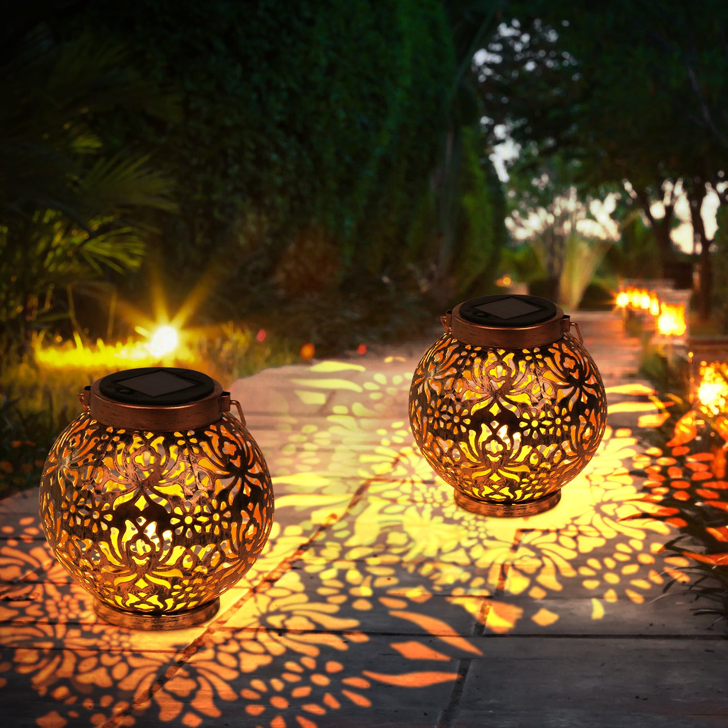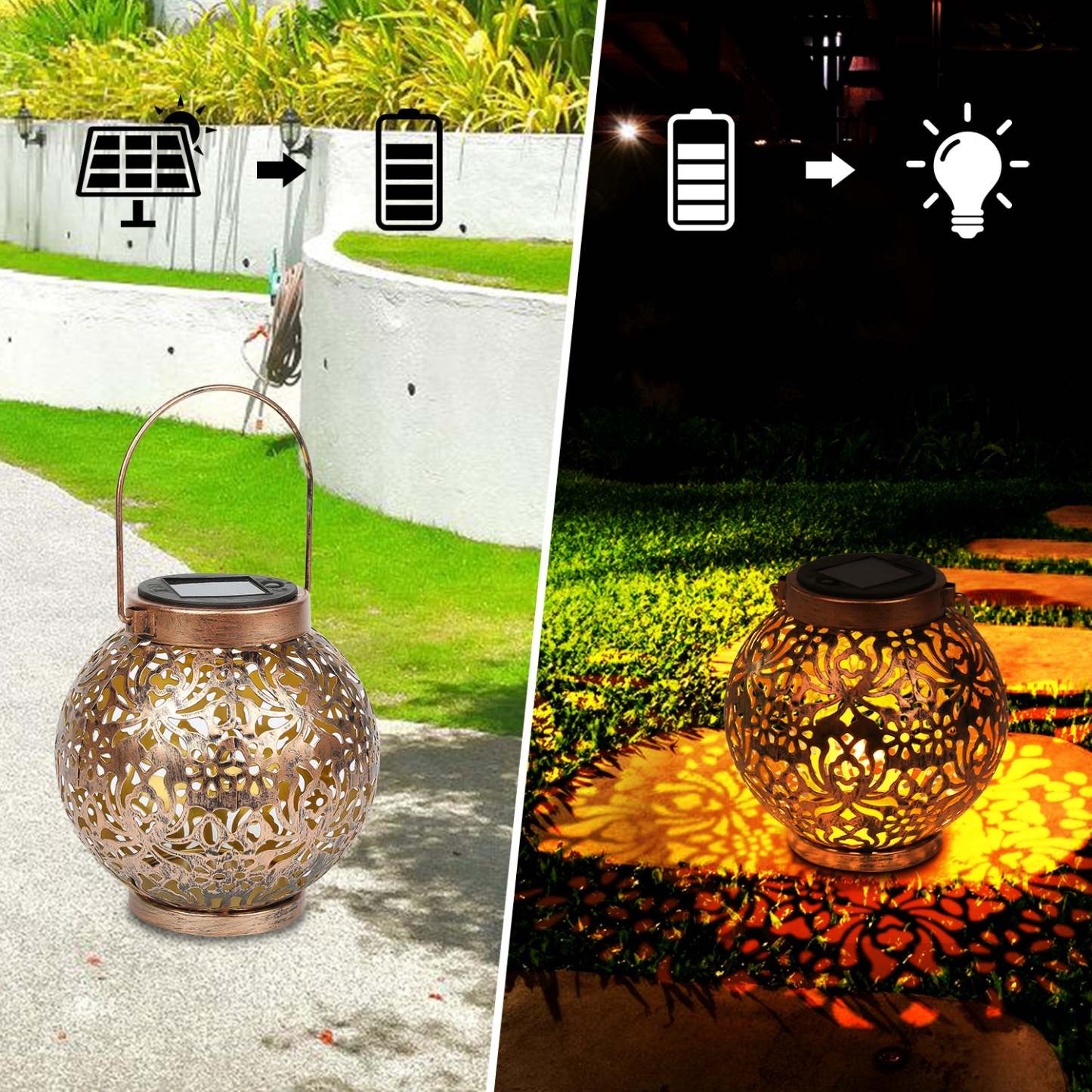 �【Vintage Ornamente】 Diese schönen Garten deko Solarlaterne strahlen nachts sanft gelb und zeigen ein lebendiges, hübsches Muster auf dem Tisch, dem Boden oder der Wand. Das antike Finish macht die Garten Solarleuchte mit ästhetischem Sinn einzigartiger. Verleihen Sie Ihrem Garten und Deck ein warmes und angenehmes Ambiente.
