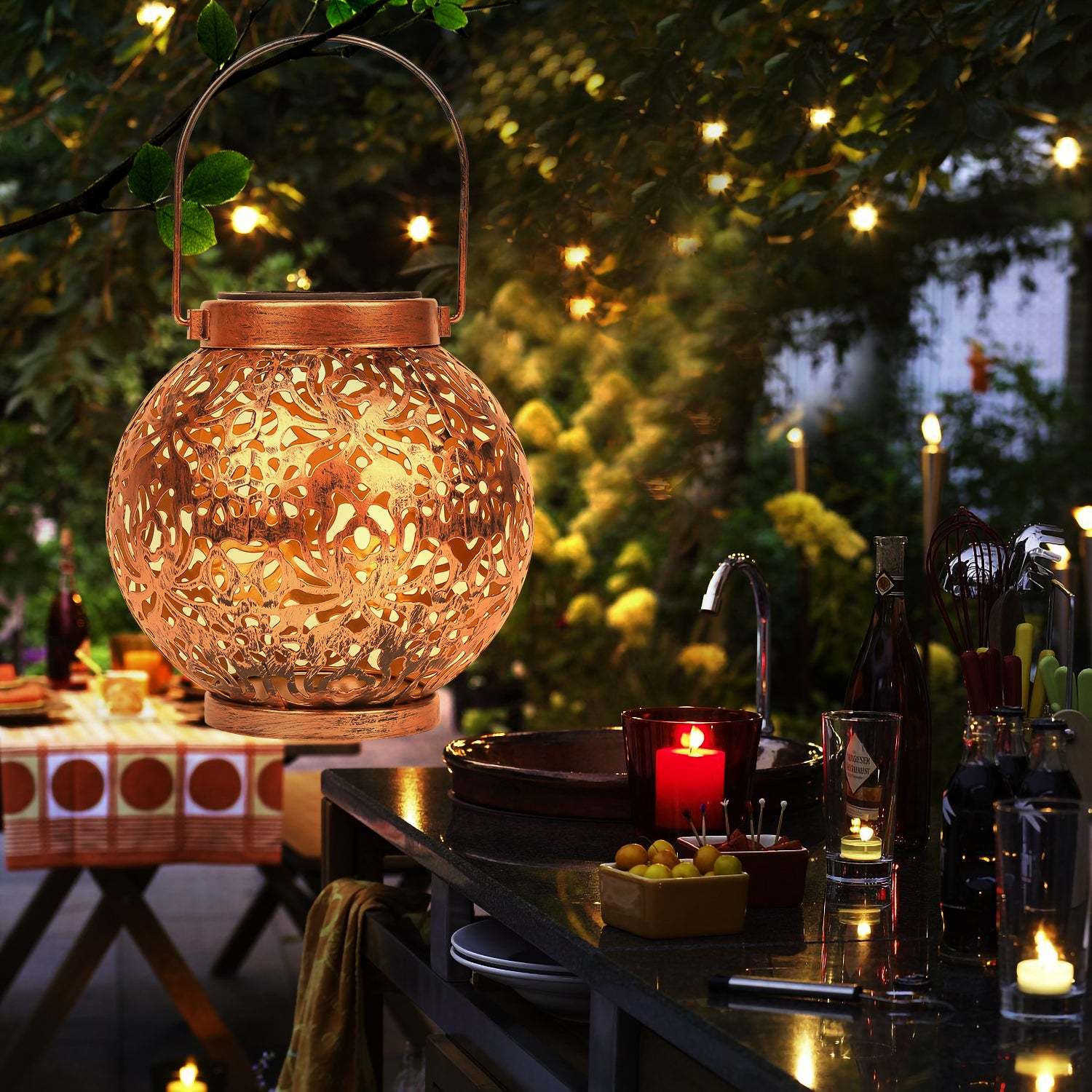 �【Langlebige Solarlaterne】Korrosionsbeständiges Metallmaterial erreicht eine lange Lebensdauer und Haltbarkeit. Die hängend Solarlampen ist mit einem haltbaren Griff ausgestattet, so dass Sie sie nicht nur auf die Tischplatte legen, sondern auch an einen Hirtenhaken hängen können.