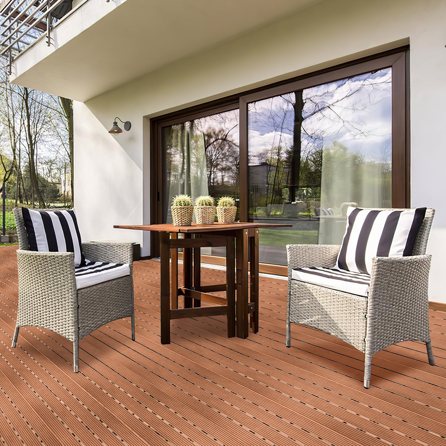 【Umweltfreundliche Materialien】Environmentally friendly - 100% recyclable and environmentally friendly. WPC stands for wood-plastic-composite (= wood composite) and consists of at least 50% wood components. Natural materials are degradable.Beständigkeit gegen Feuchtigkeit und Termiten.Rutschfest, splitter- und rissfest,feuerfeste Ebene B1,Wirksames Flammschutzmittel.
