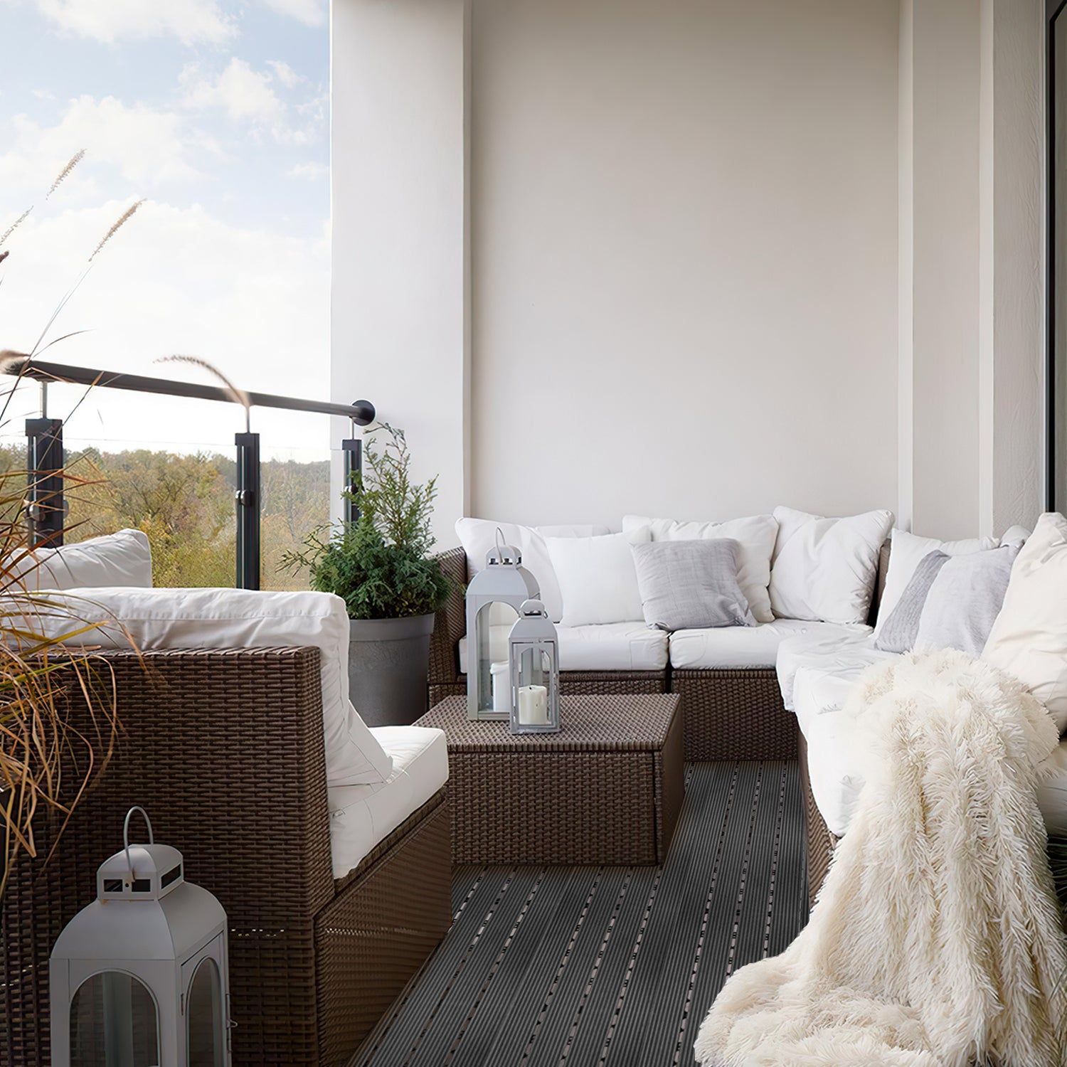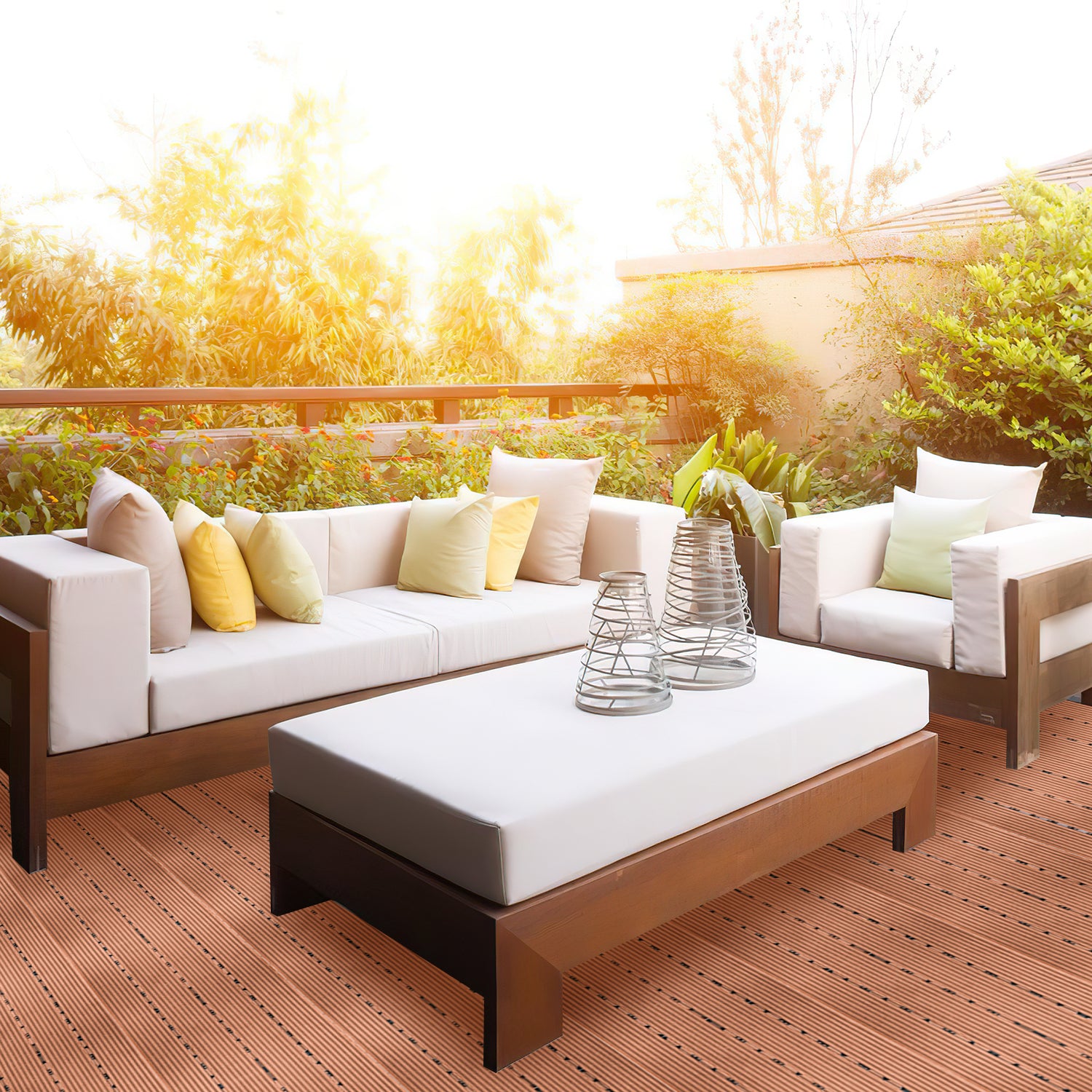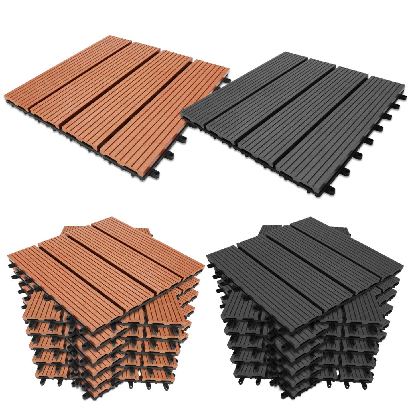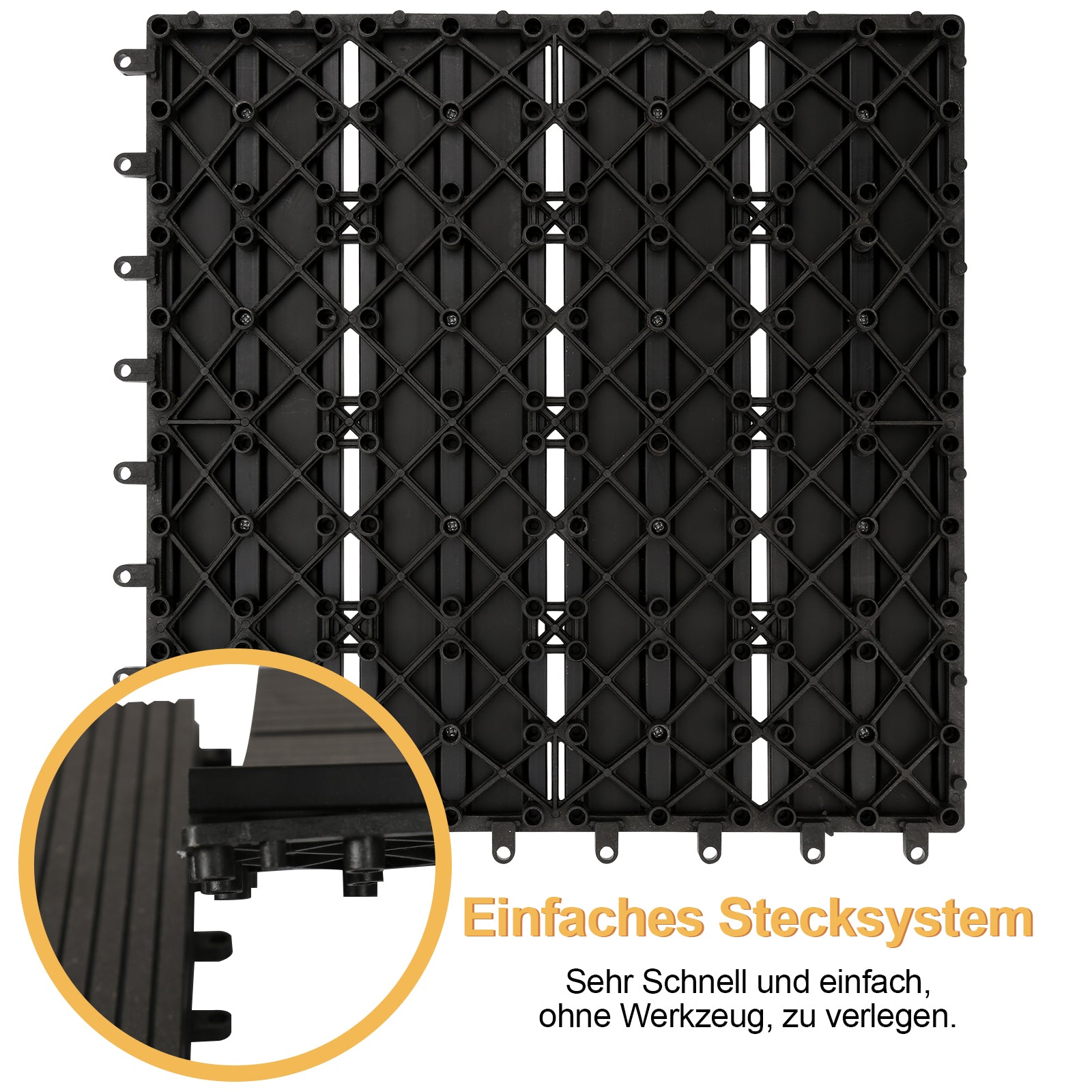 【Starke Haltbarkeit】WPC-Fliesen bestehen aus hochwertigen Holz-Kunststoff-Verbundwerkstoffen, so dass die Fliesen wasserabweisend und äußerst haltbar sind.Das Material ist witterungs- und UV-beständig und bleibt auch ohne Behandlung mit Lacken oder Ölen form-und farbstabil. Bequemes Barfußlaufen, kein Spalten wie Holz.
